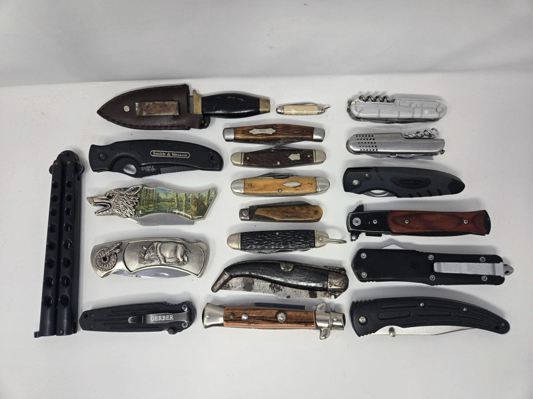 Lot # 24 - 20 Vintage & No- Pocketknives, Smith & Wesson, Gerber, Bear MGC Starting Bid: $ 5.00 Bids: Bidding starts in: |