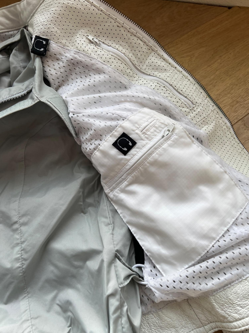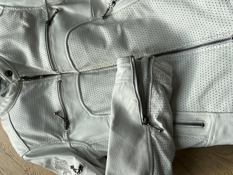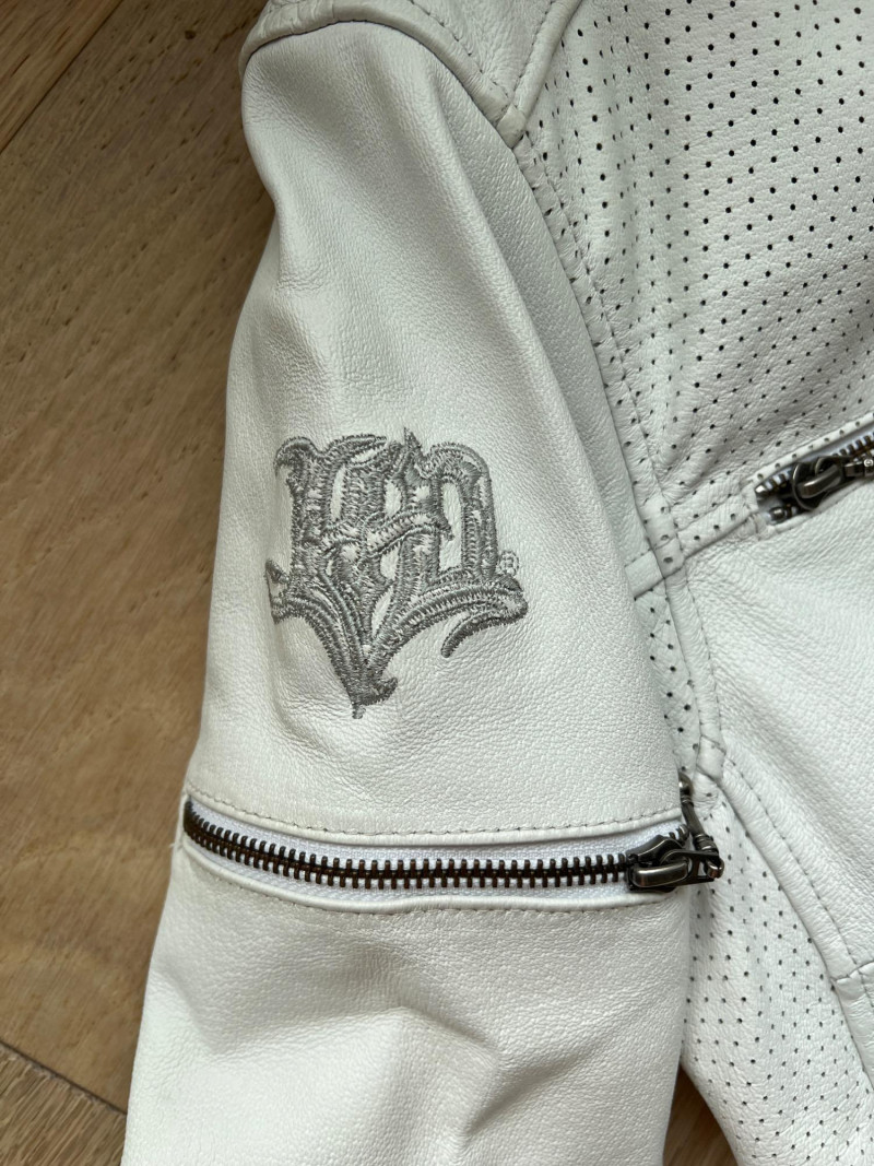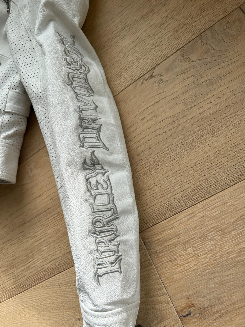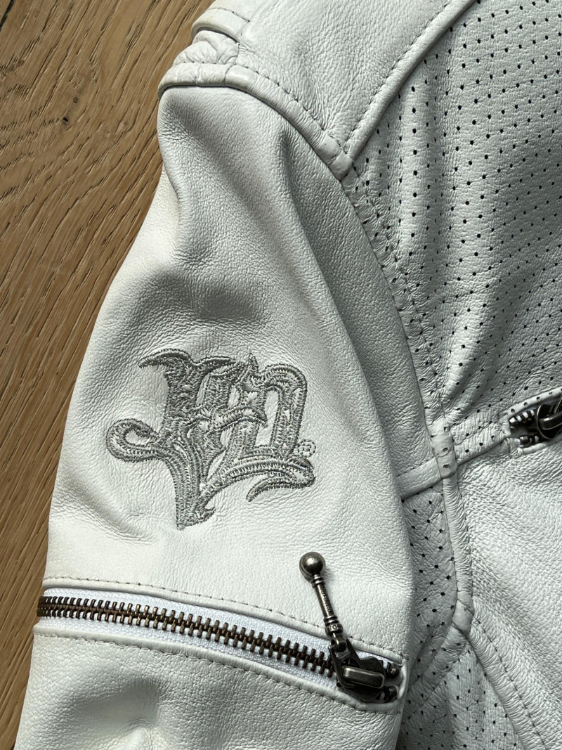 A striking Harley-Davidson women’s jacket in genuine white leather, featuring a removable inner nylon liner for added comfort and versatility. Designed with classic biker styling and premium materials, this piece blends iconic branding with functional warmth. Ideal for collectors, riders, or fashion-forward enthusiasts. Material: Genuine leather with nylon liner Color: White Style: Women’s motorcycle jacket