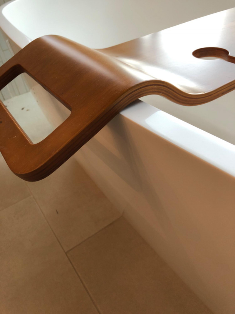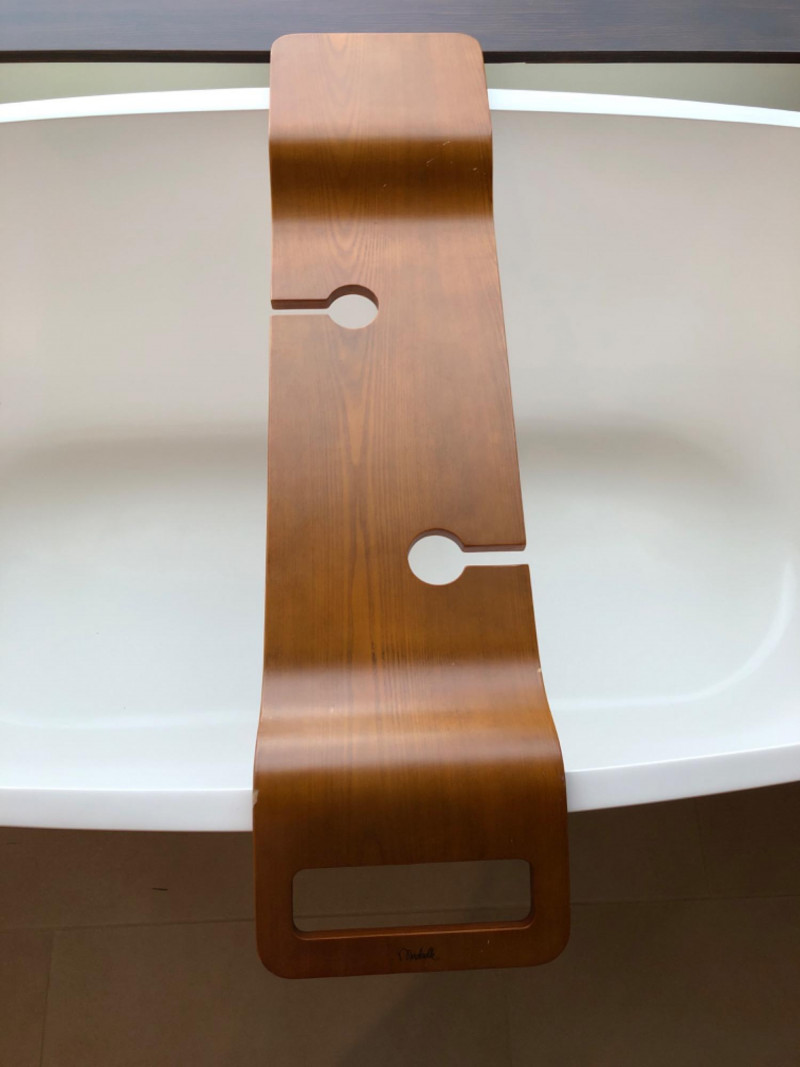A spa-inspired Mirabelle bathtub caddy crafted from richly grained acacia wood. Designed to span the width of a standard tub, this elegant piece features sculpted cutouts for two wine glasses, plus space for a book, candle, or bath essentials. Acacia’s natural gloss and water-resistant properties make it ideal for humid environments, offering both beauty and durability. Brand: Mirabelle Material: Acacia wood Dimensions: 39.5" L × 10" W Design: Holds two stemmed glasses; spacious surface for accessories Finish: Glossy, natural grain A warm, grain-rich accent for bath lovers, gift-givers, or those curating a luxurious self-care space.