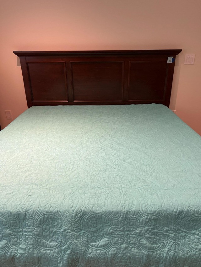 Wrap yourself in the quiet luxury of this king-size seafoam quilt, double-sided for versatile styling and year-round comfort. Measuring 96" x 106", its generous dimensions offer full coverage for larger beds or layered presentation. The soft seafoam hue evokes coastal calm, while the reversible design adds depth and flexibility to your space. Ideal for collectors of vintage textiles or those curating a serene, Northwest-inspired home.