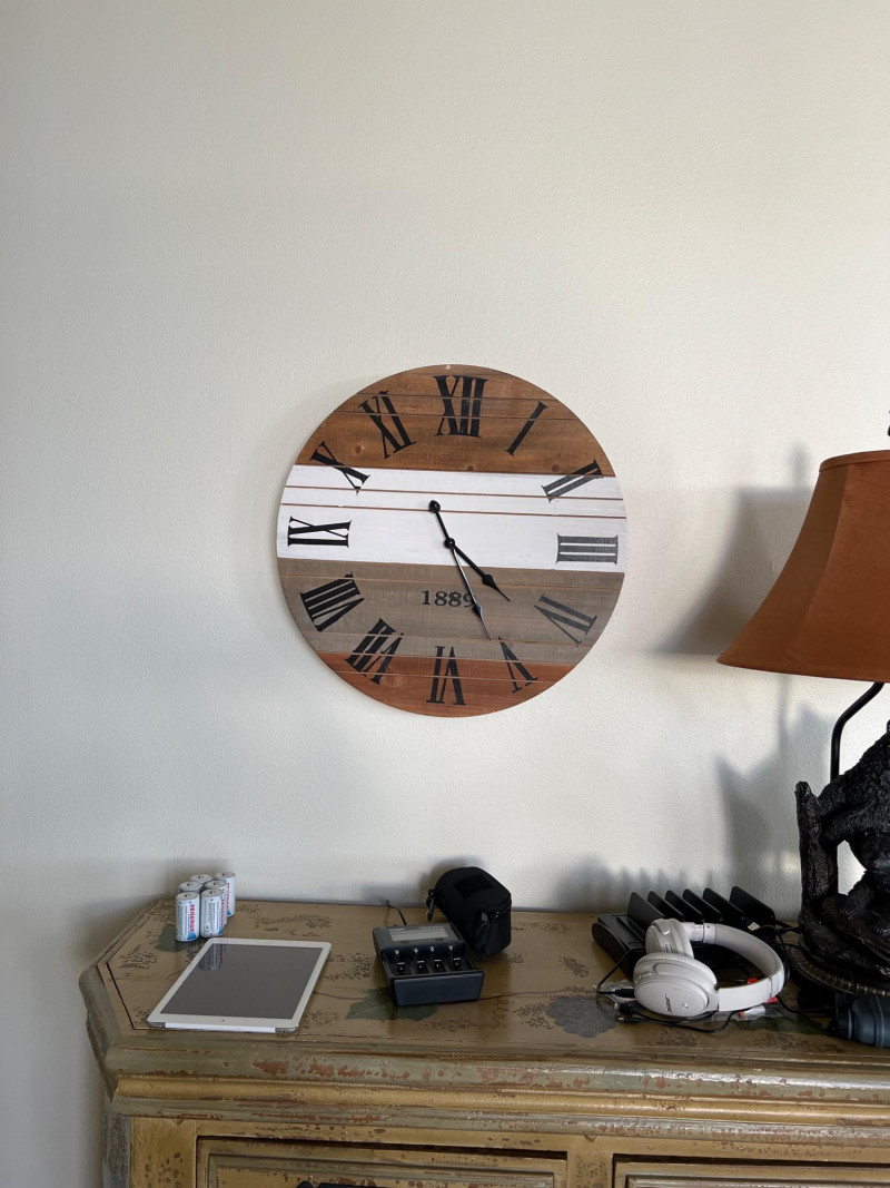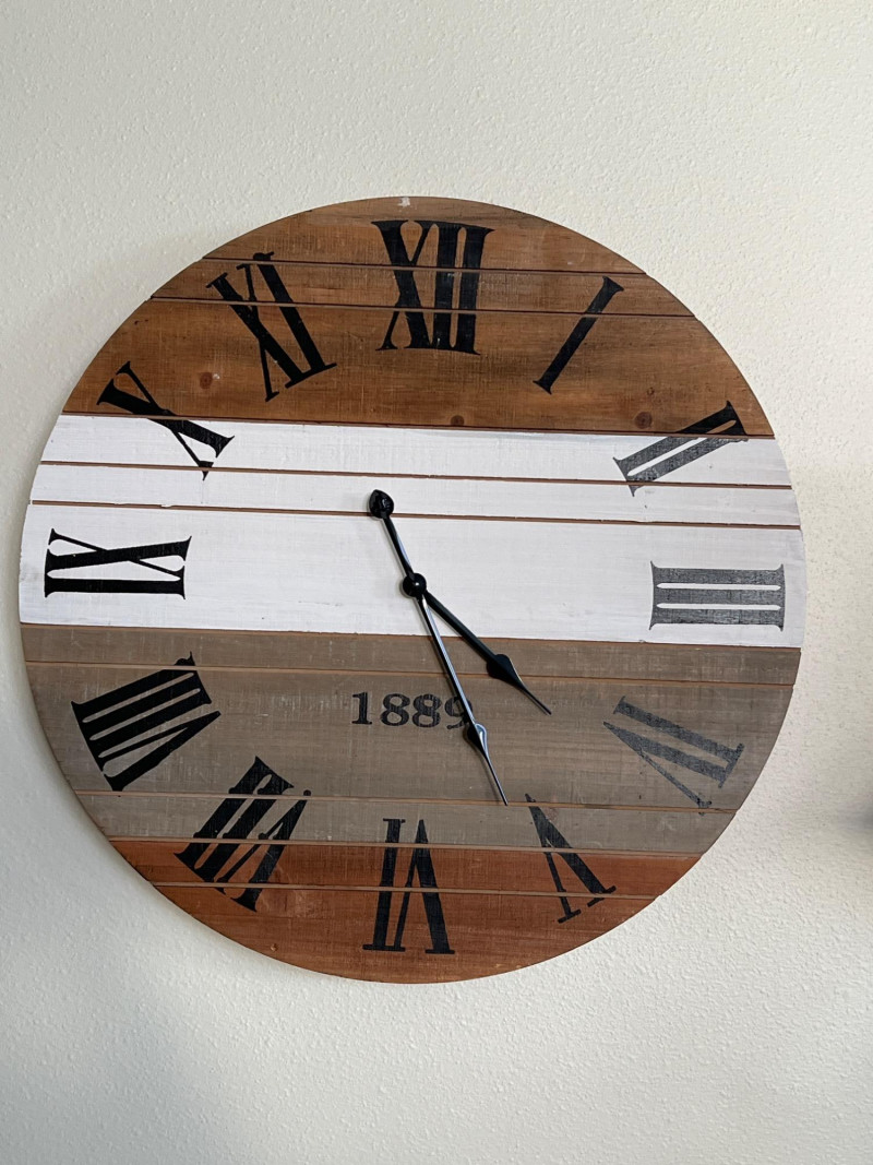 A bold, rustic accent with vintage charm. This 21" farmhouse-style wall clock is crafted to resemble an oversized wooden spool, blending industrial texture with country warmth. Ideal for shop offices, home builds, or staging projects that call for character and scale. Whether you're outfitting a breakroom, adding flair to a remodel, or curating a Northwest-inspired space, this piece delivers visual impact and timeless appeal.