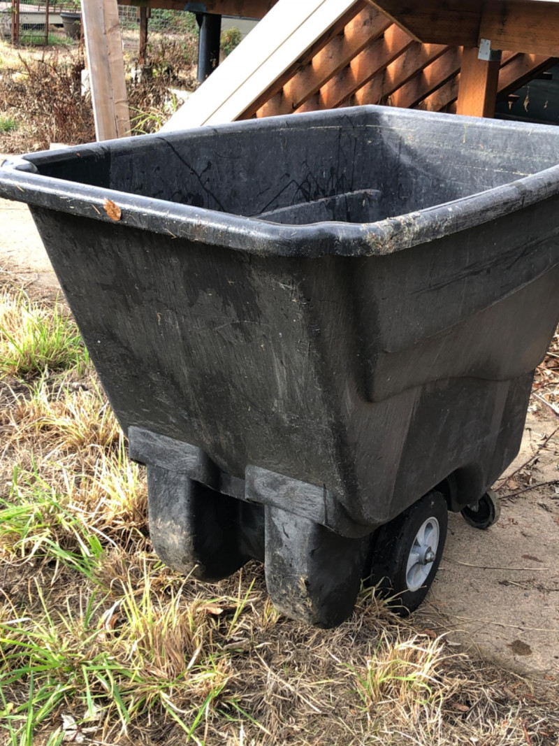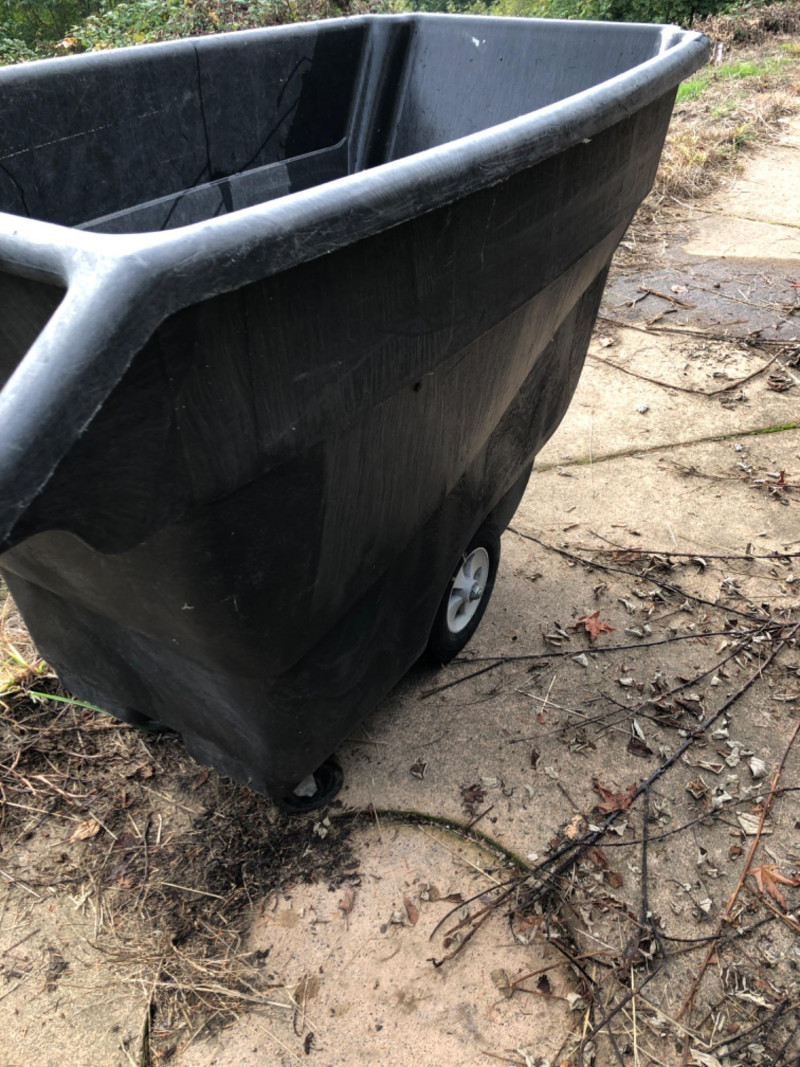 Built for serious hauling, this commercial-grade Rubbermaid wheeled tote measures a commanding 71 inches in length, 34 inches wide, and 42 inches high. Ideal for construction sites, estate cleanouts, or seasonal gear, its rugged build and generous capacity make it a workhorse for heavy-duty storage. Scuffs and wear consistent with use.