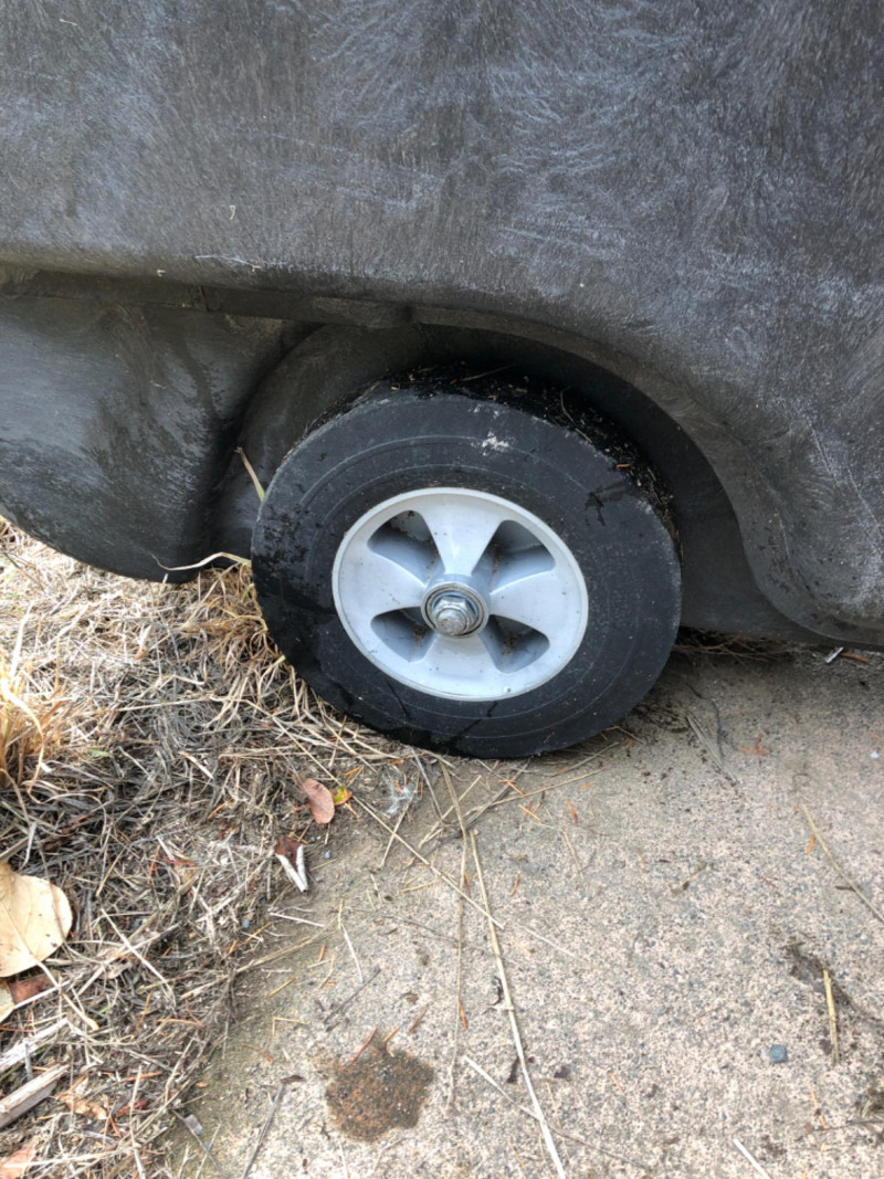 Lot # 46 - Large Rubbermaid Wheeled Tote – 71-Inch Utility Storage