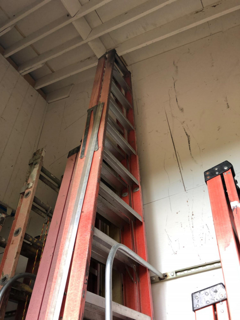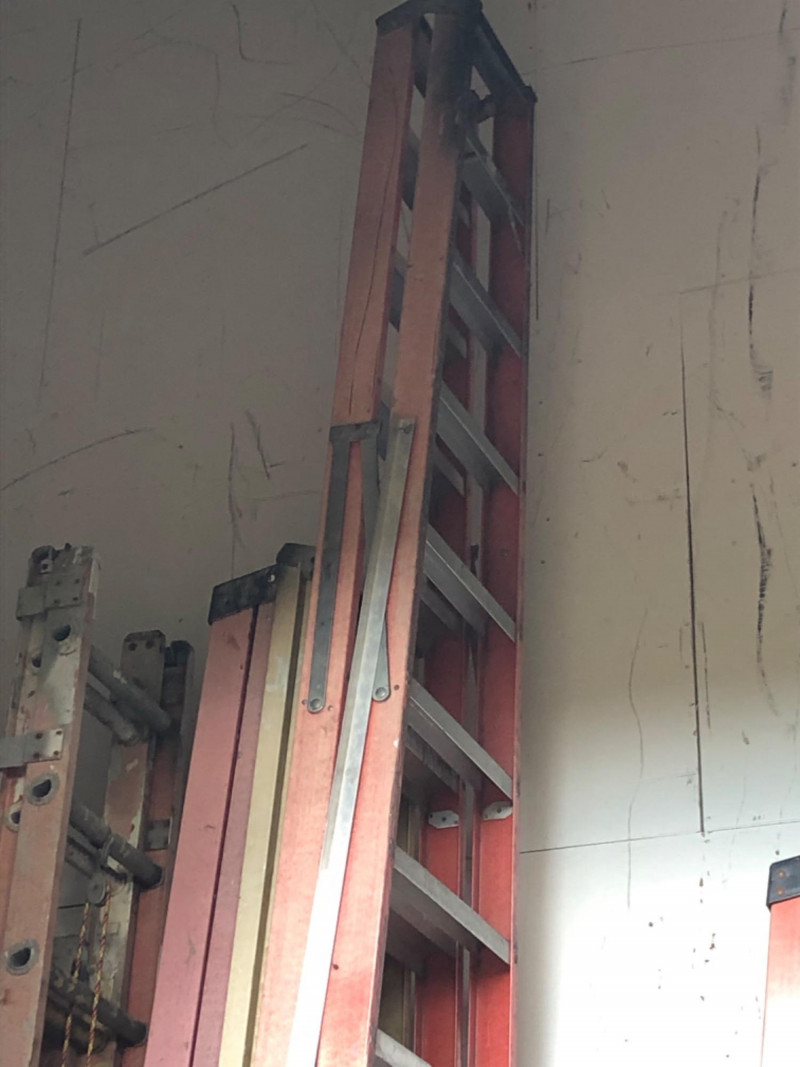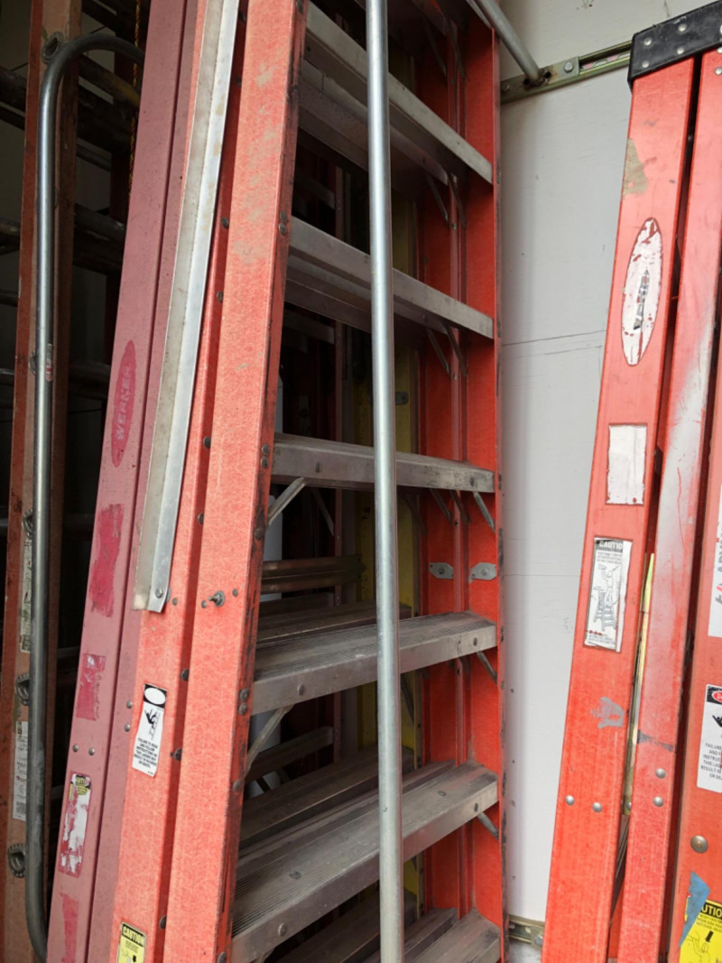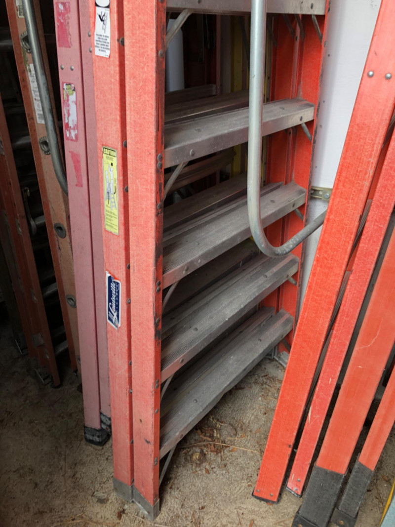 Built for serious elevation, this 16-foot Louisville A-frame ladder offers stability and strength for construction, maintenance, or estate cleanout work. Its wide stance and reinforced steps provide secure footing, while the aluminum frame ensures durability without excessive weight. Scuffs and wear consistent with use. Due to size and weight, additional help may be needed at pickup.