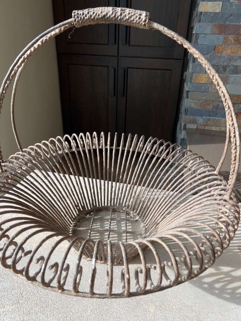 Lot # 55 - Iron Basket with Ceramic Fruit & Paper Mâché Spheres– Old World Charm