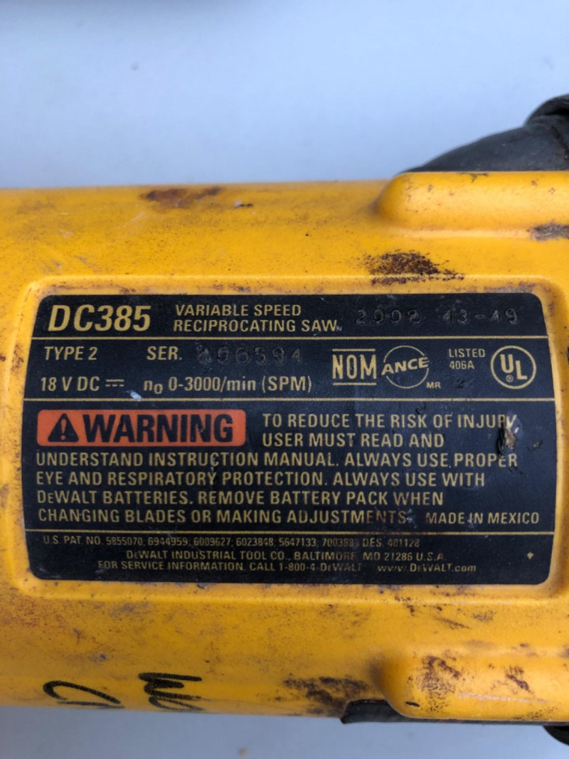 Lot # 77 - DeWalt DC385 Cordless Reciprocating Saw – Variable Speed