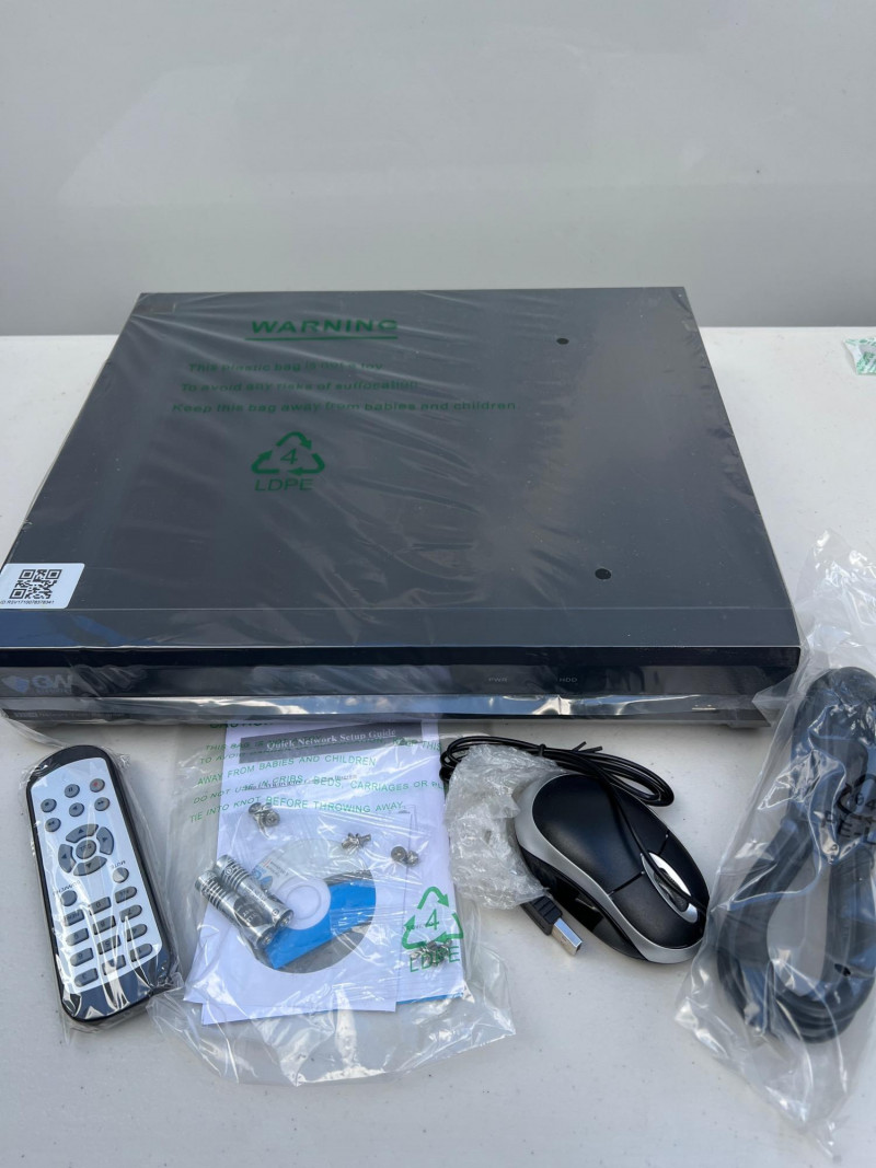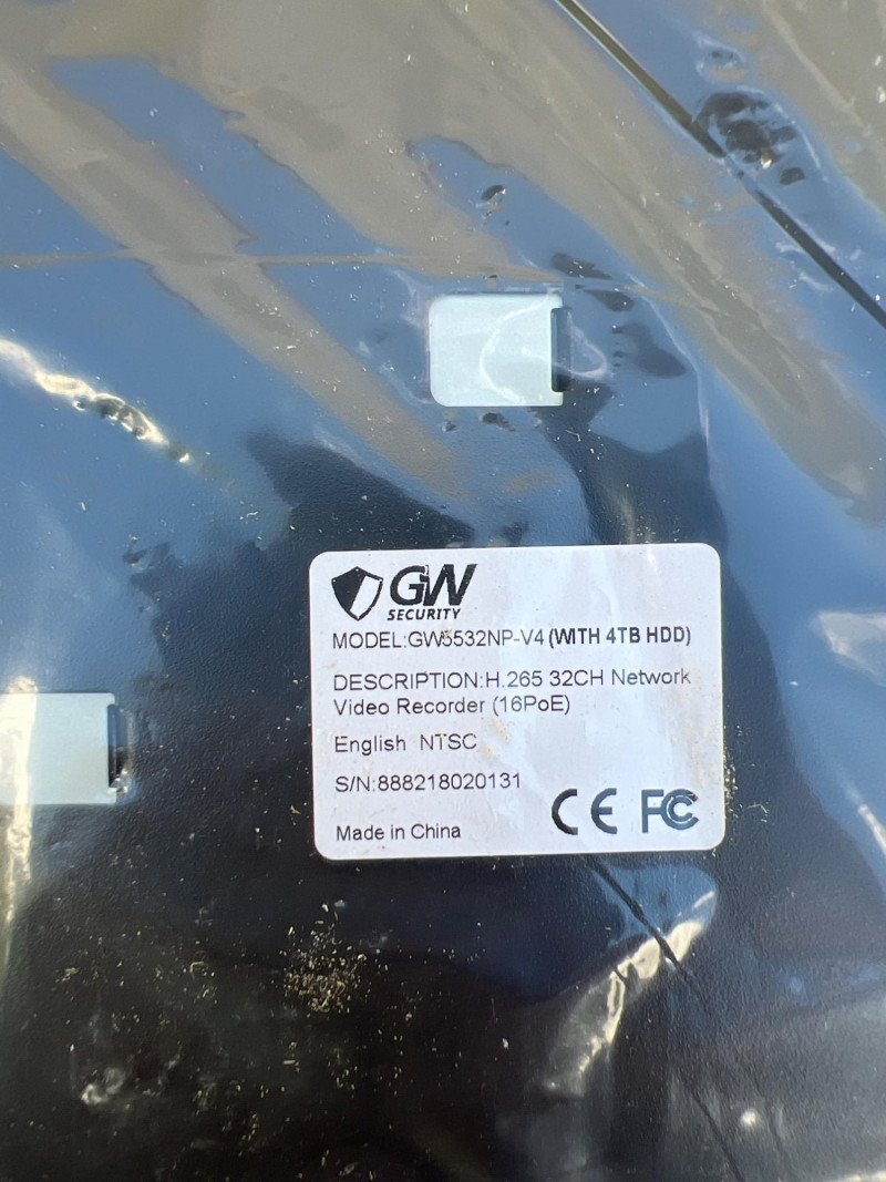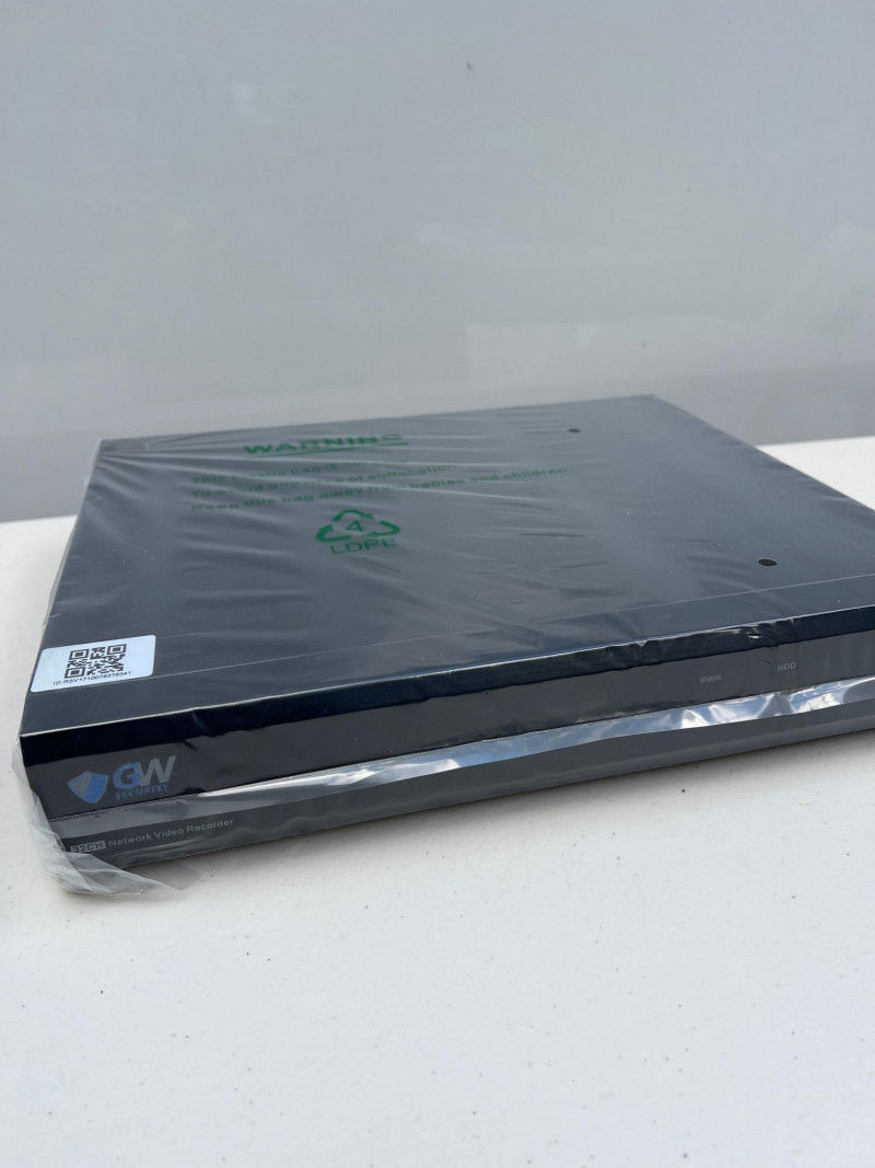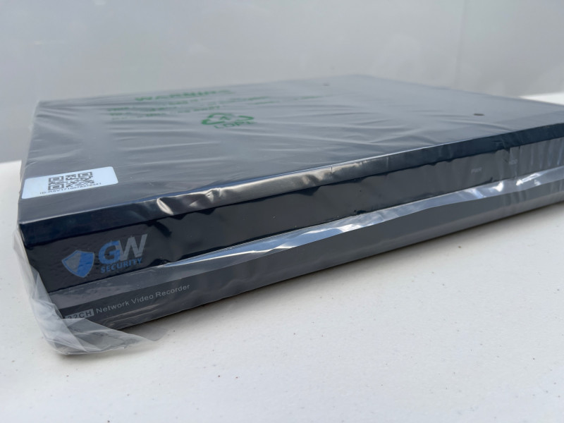 GW Security HD network video recorder (NVR), Model GW5532NP-V5,new in box. Designed for Power-over-Ethernet (PoE) surveillance systems, this unit supports multiple high-resolution IP cameras and offers remote viewing, motion detection, and scheduled recording. Ideal for residential or commercial setups requiring centralized video management. Compatible with GW Security bullet and dome cameras. Retails at $1,000.
