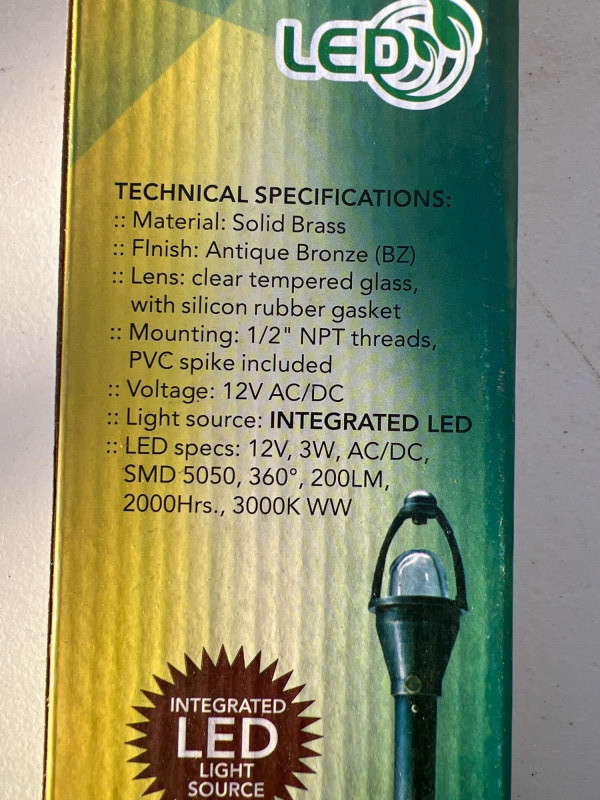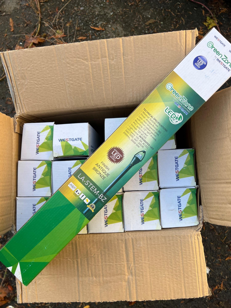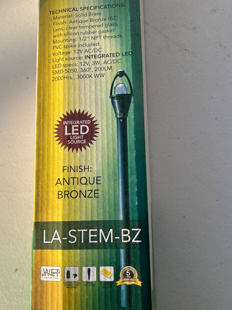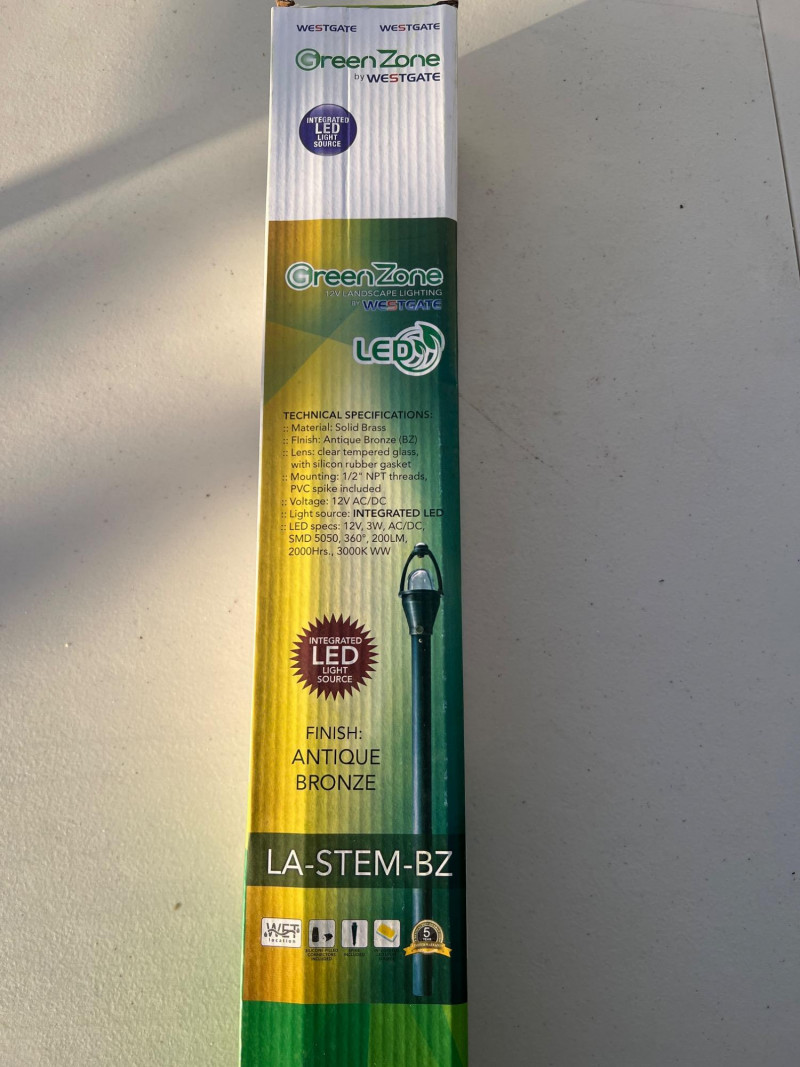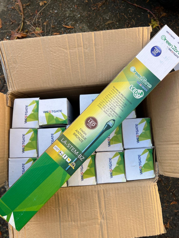 Lot includes 15 new-in-box Westgate LA-STEM-BZ LED landscape lights. Each fixture features solid brass construction with an antique bronze finish, designed for durability and timeless appeal in outdoor settings. Energy-efficient LED design provides warm illumination for pathways, gardens, or architectural accents. Part of Westgate’s Green Zone series, ideal for residential or commercial landscape projects.
