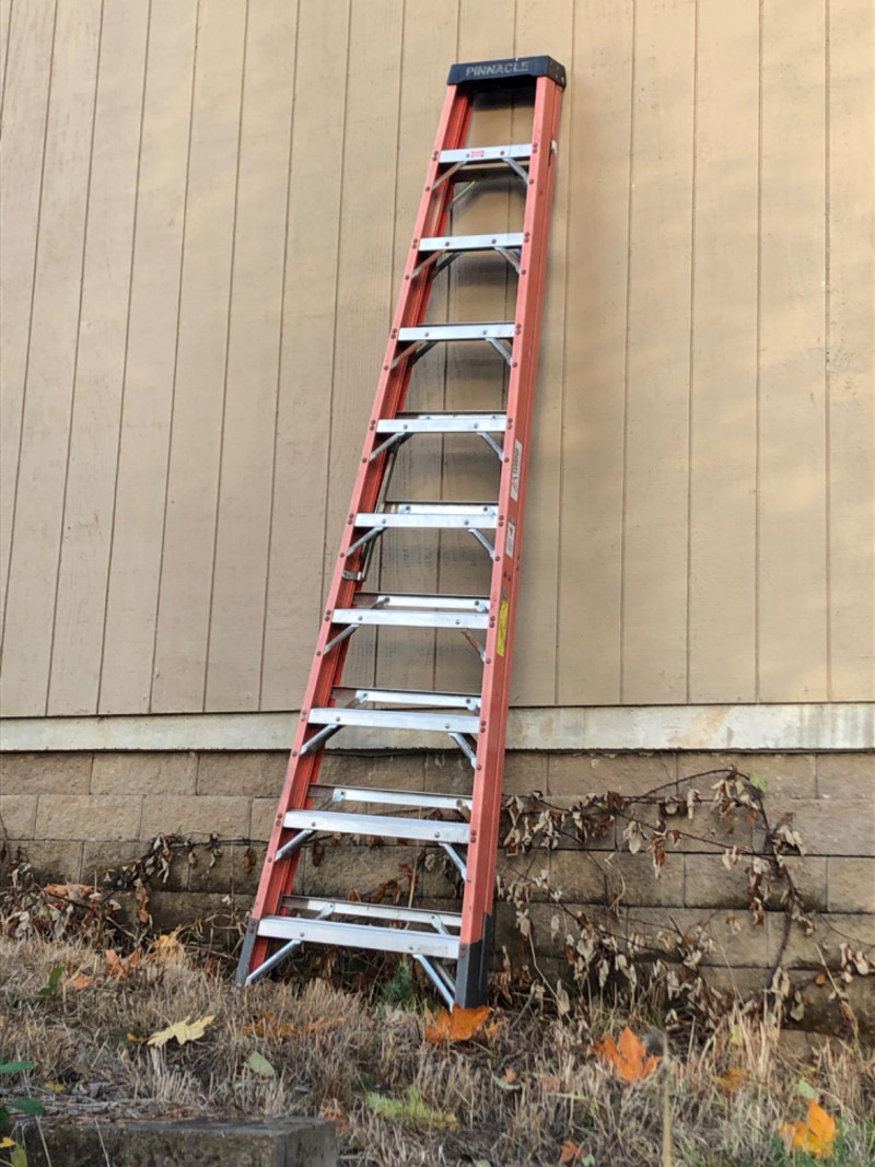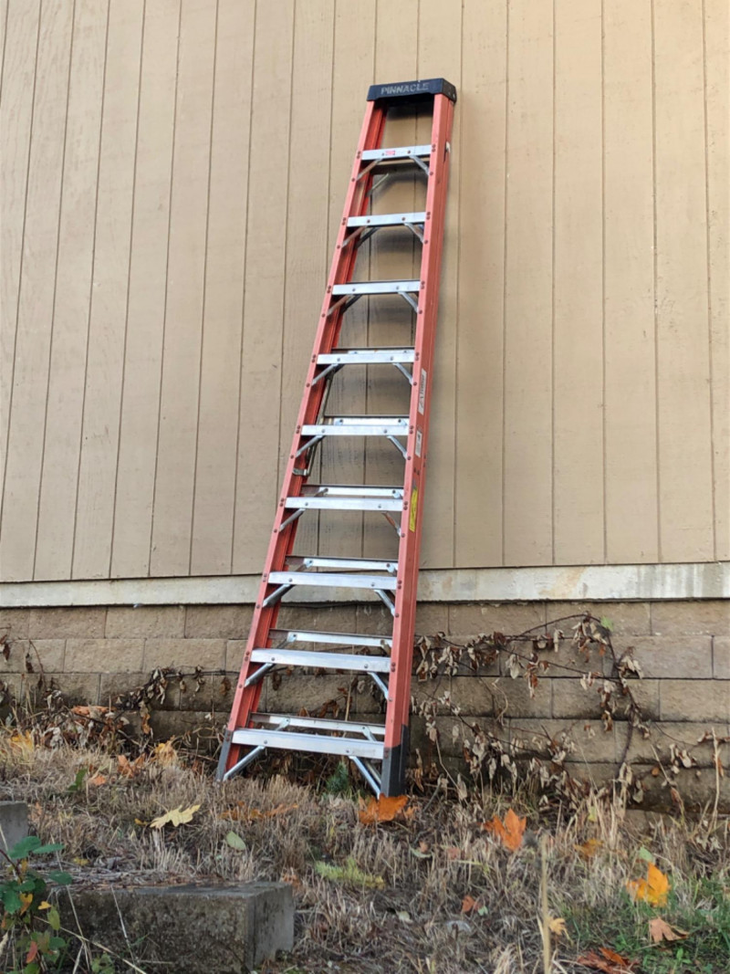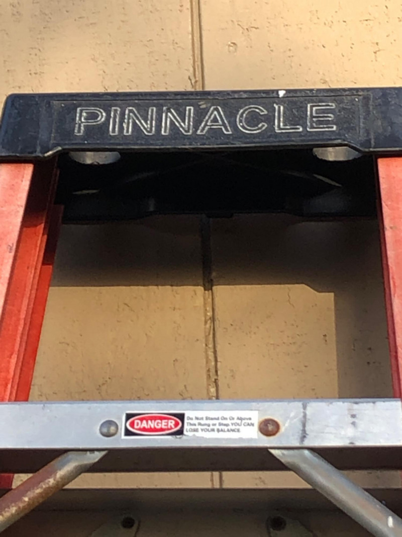 Pinnacle 10-foot A-frame ladder constructed from durable fiberglass for strength and safety. Designed for professional and residential use, with slip-resistant steps and a wide base for stability. Ideal for electrical work, painting, and general maintenance tasks requiring elevated access.