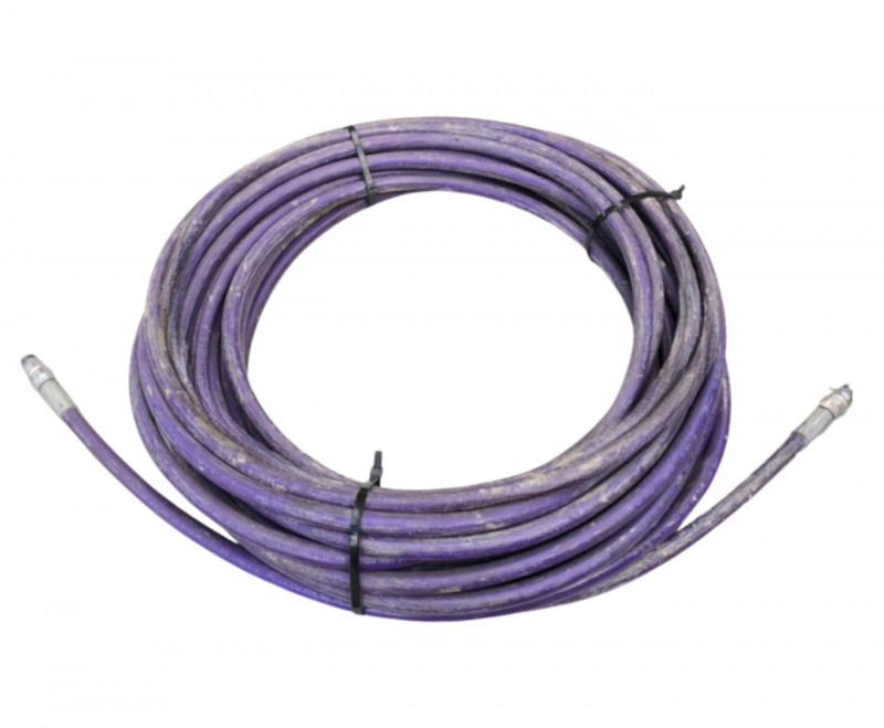 Industrial-grade spray painting hose measuring 100 feet in length with a 1/2" diameter. Designed for high-pressure applications in commercial or residential painting. Flexible and abrasion-resistant construction supports extended reach and consistent airflow. Compatible with standard fittings and spray systems.
