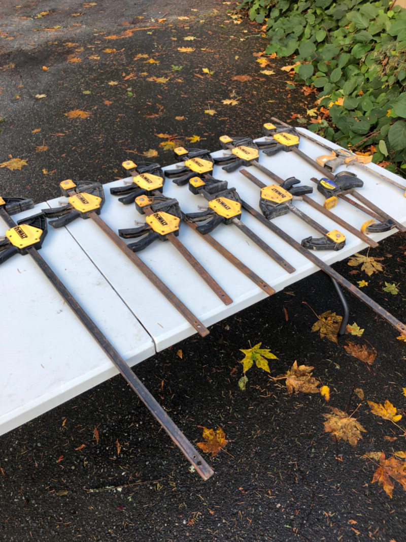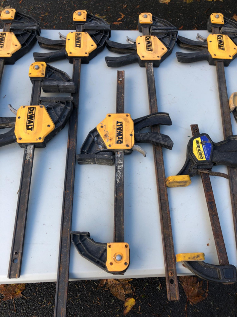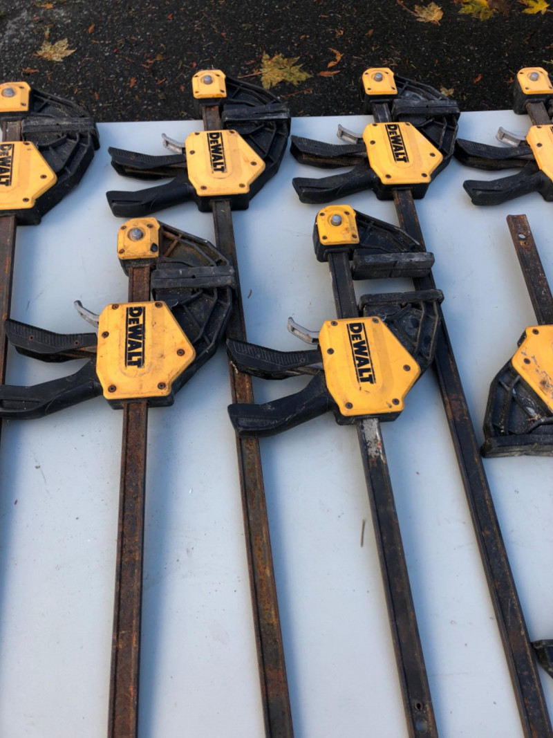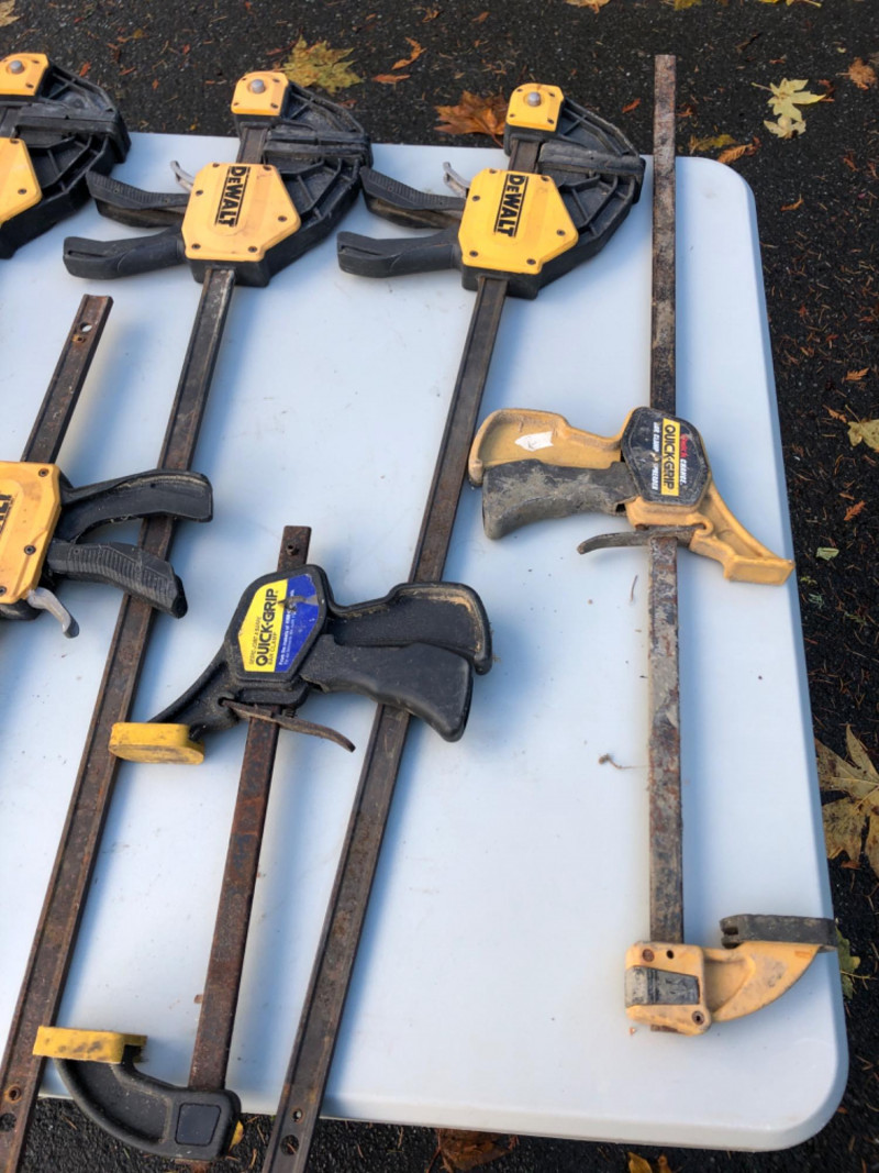 Lot 104 includes eleven clamps in assorted sizes, featuring trusted brands like DeWalt and Quick-Grip. Designed for woodworking, cabinetry, and general shop use, this set includes bar clamps and trigger clamps ideal for holding, gluing, and stabilizing materials. A versatile bundle for contractors, makers, or restoration crews building out their toolkits. Sizes: 44" - 2 Clamps 32" - 5 Clamps 21" - 3 Clamps 14" - 1 Clamp