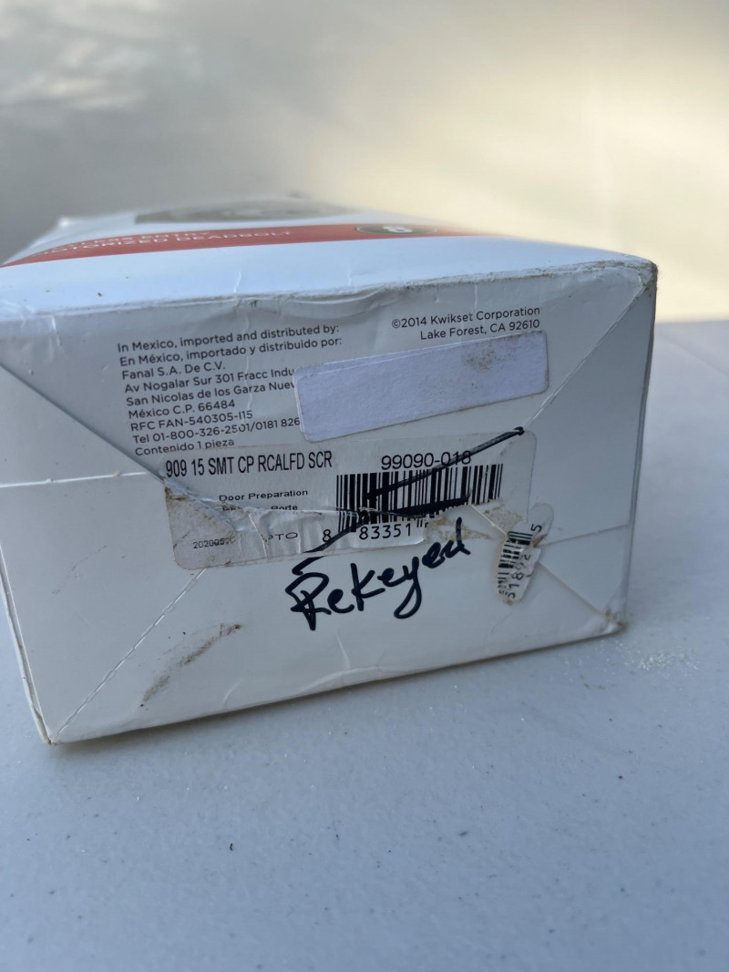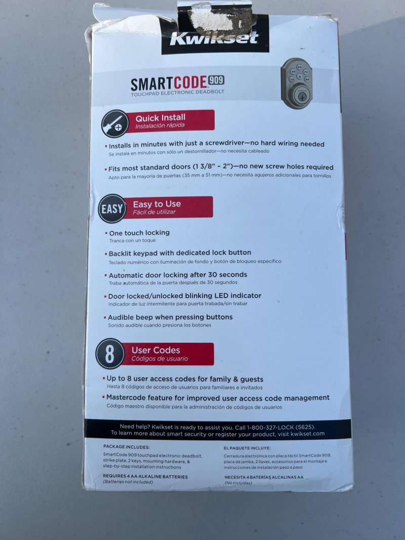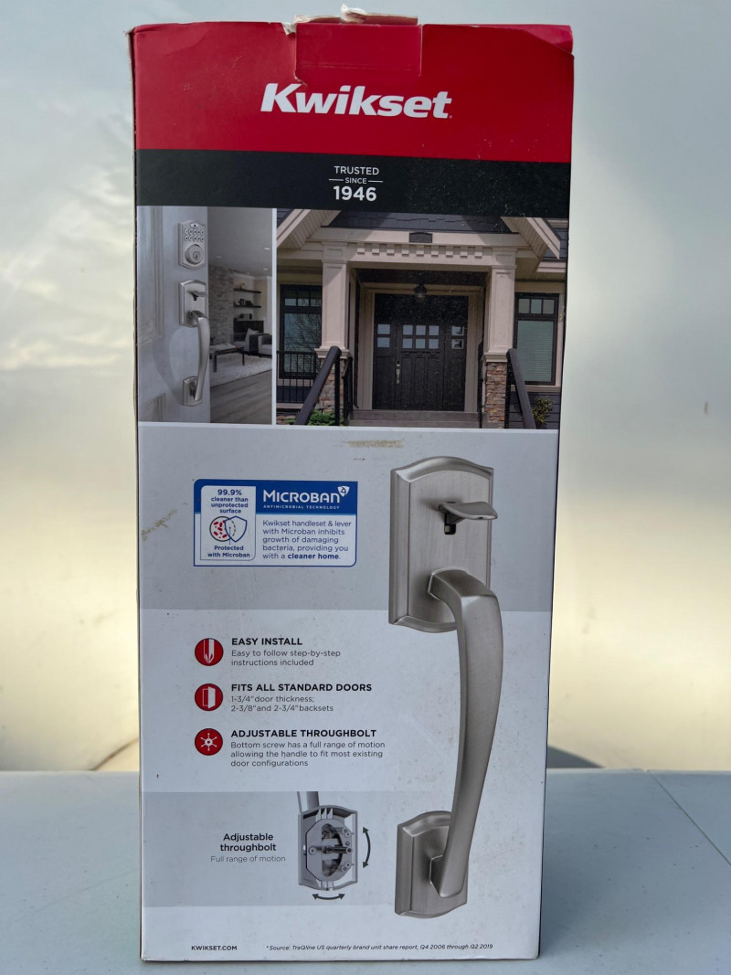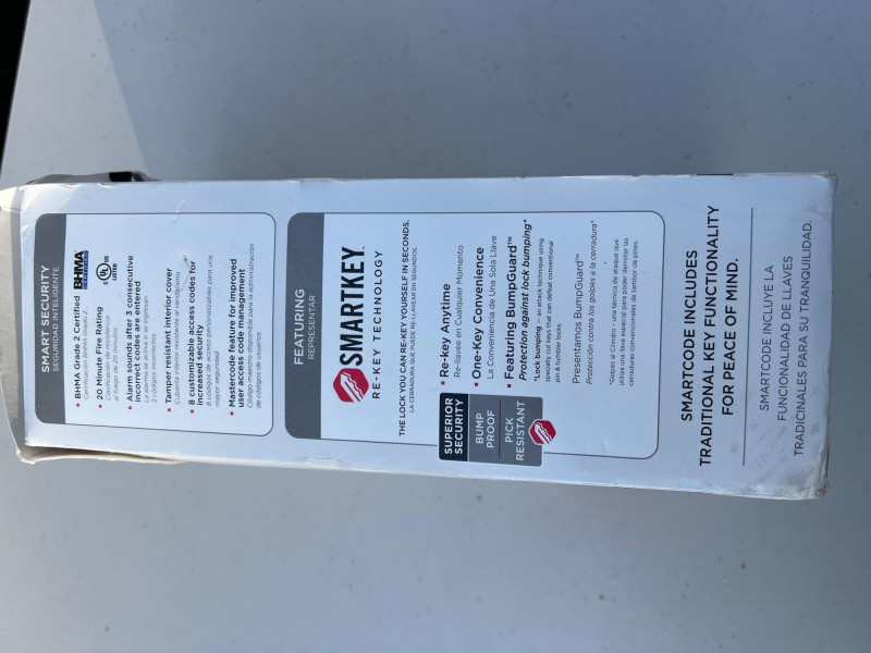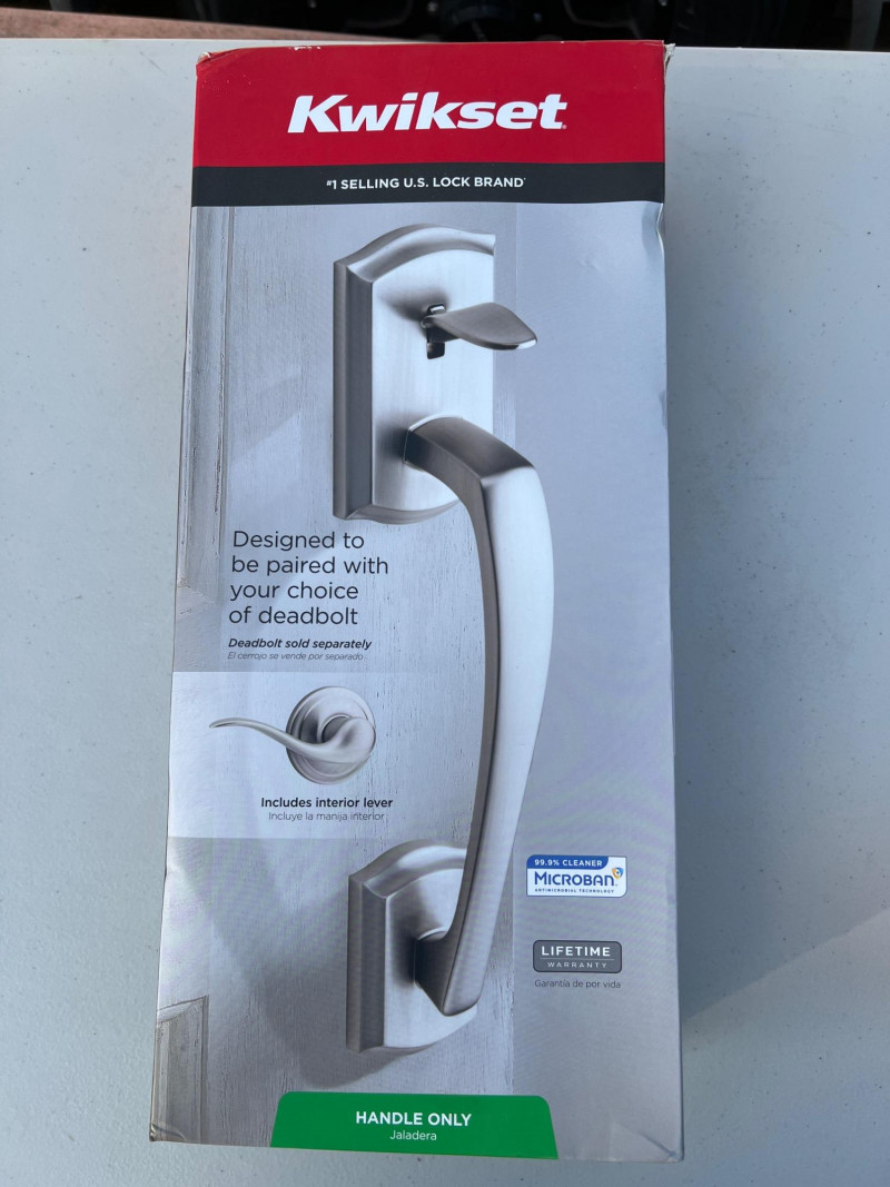 Kwikset handle and SmartCode deadbolt. In working condition. This set offers keyless entry with programmable codes, ideal for residential or light commercial use. The SmartCode deadbolt features a backlit keypad and motorized locking mechanism, while the matching handle adds a clean, modern finish. A practical upgrade for entry doors, blending convenience, security, and style. SmartCode lock has been rekeyed. Both items are in box. The handle appears to be never removed from box, the lock is not guaranteed to be never used.