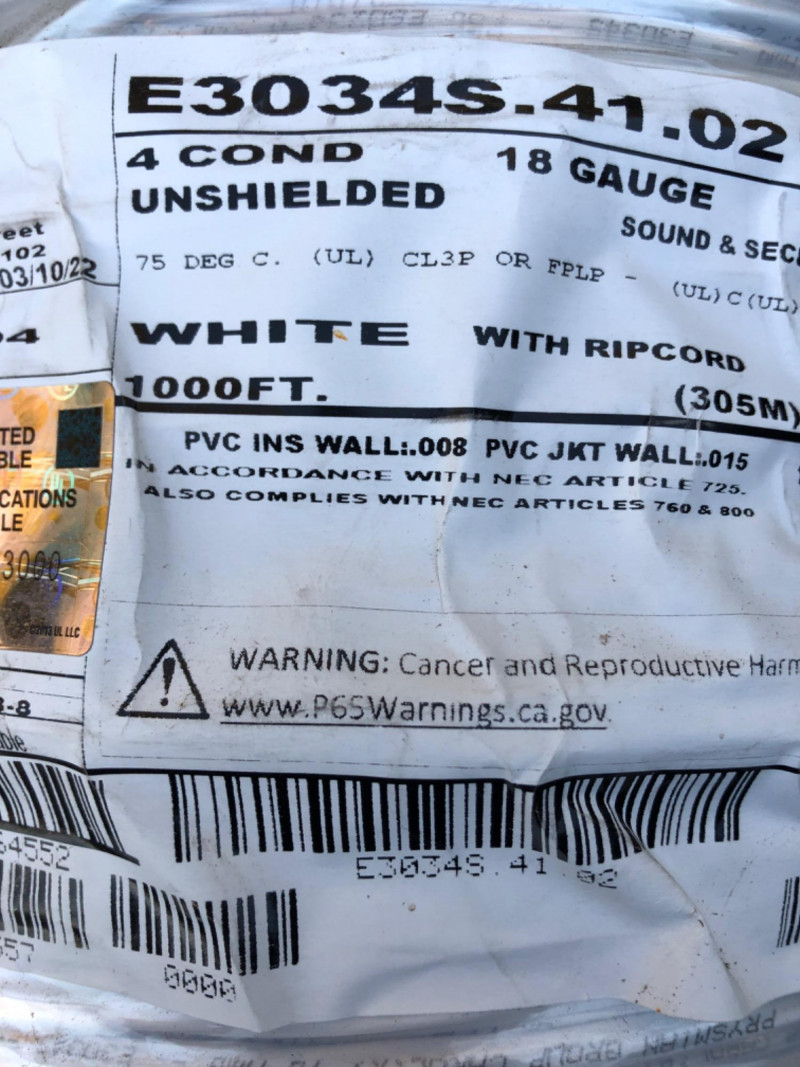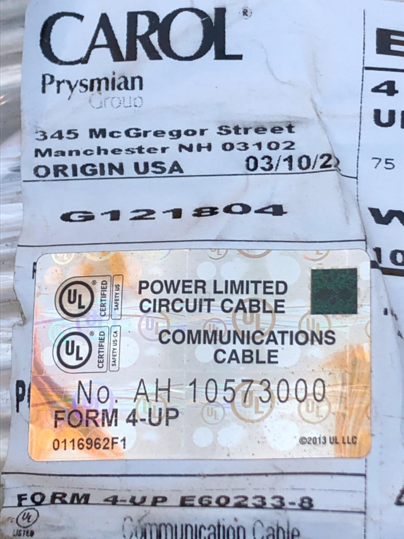 Lot # 123 - 1000 Feet of Carol Prysmian 18 AWG Communication Cable – 4-Conductor U