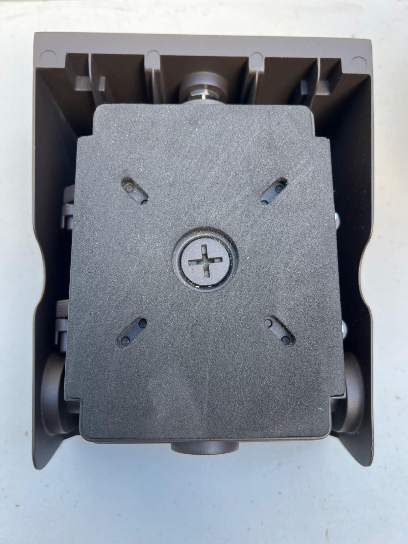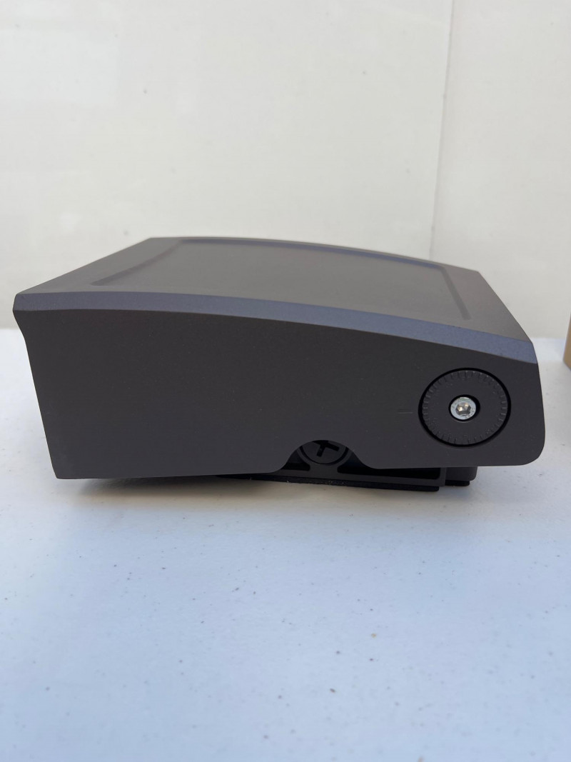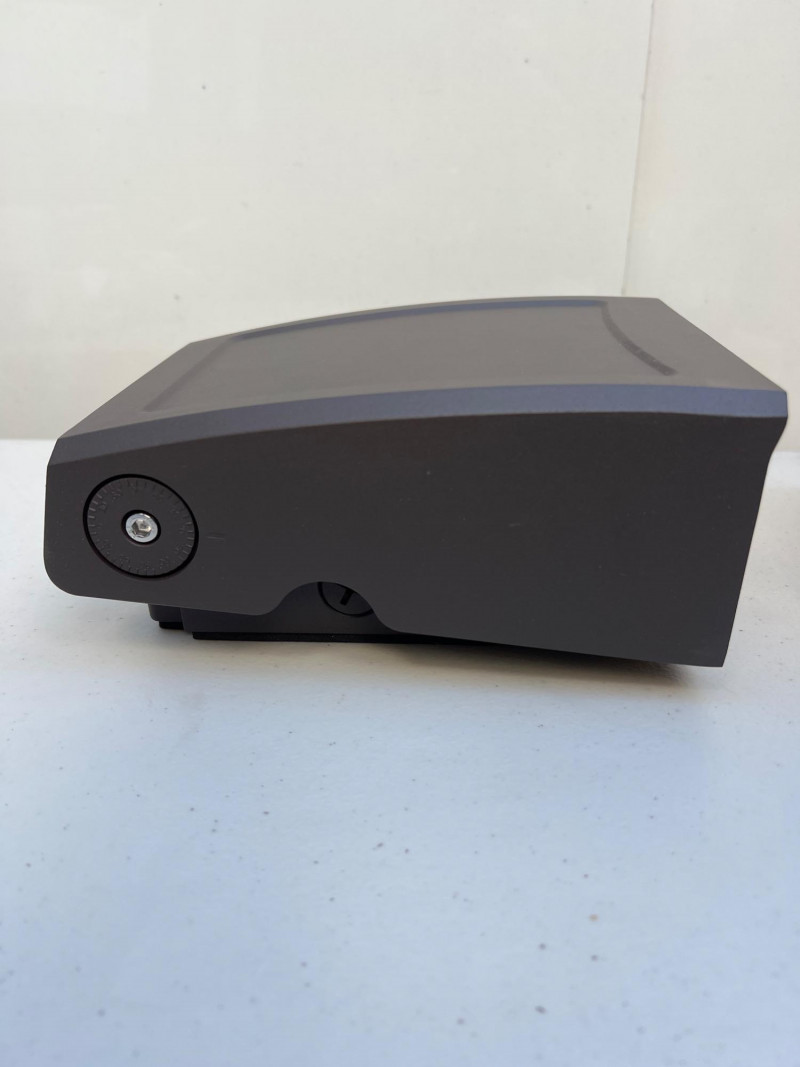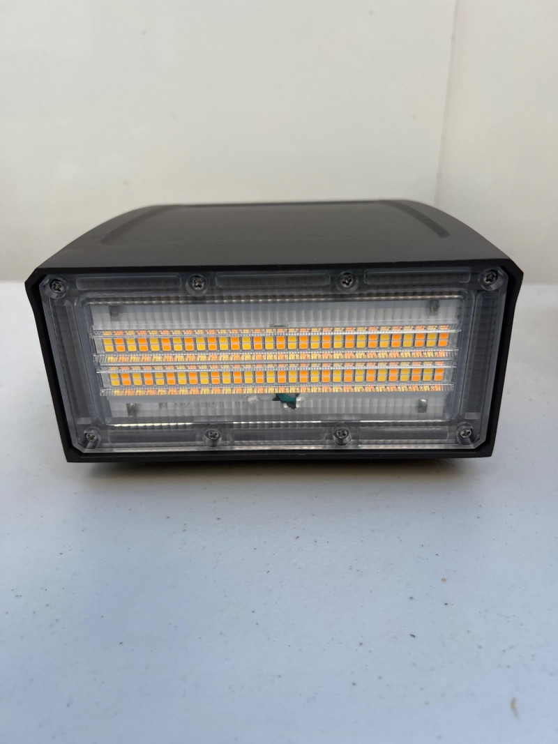Eight adjustable wall pack lights, 5L model. Made of Diecast Aluminum and dimmable with 3 intensity choices. Designed for exterior lighting with durable housing and directional flexibility. Ideal for contractors or property managers.