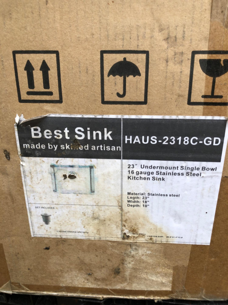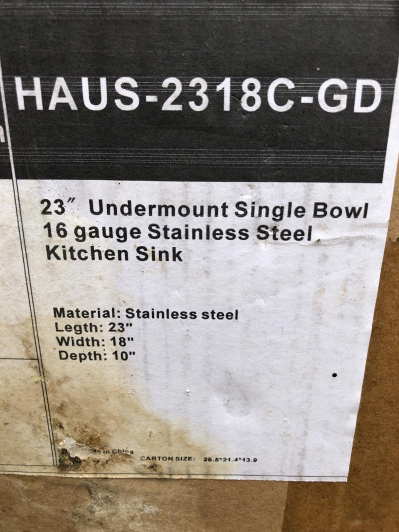 Haus 2318C-GD 23" undermount kitchen sink, crafted from premium 16-gauge stainless steel. This single-bowl sink offers a deep basin and sleek satin finish, ideal for modern kitchen installations or contractor-grade remodels. The undermount design allows for seamless countertop integration, while the sound-dampening pads reduce noise during use. Perfect for residential upgrades, shop kitchens, or inventory for builders and installers. Brand: Haus Model: 2318C-GD Type: Undermount single bowl sink Material: 16-gauge stainless steel Finish: Satin Condition: New