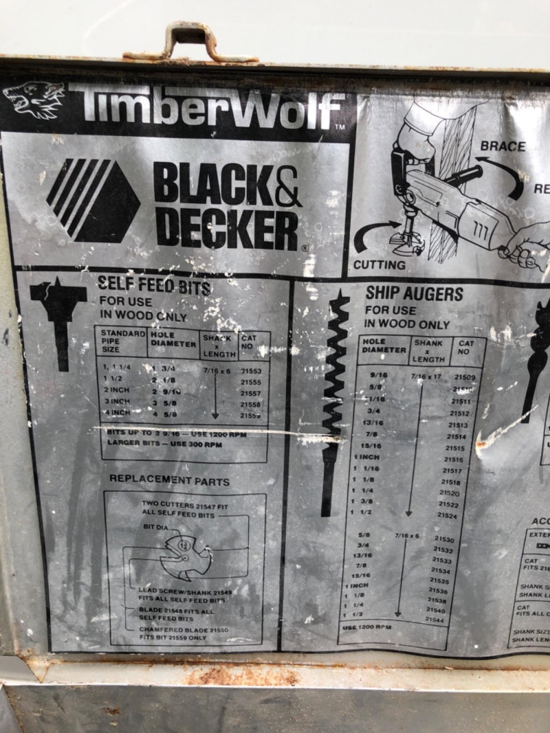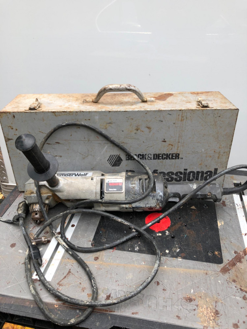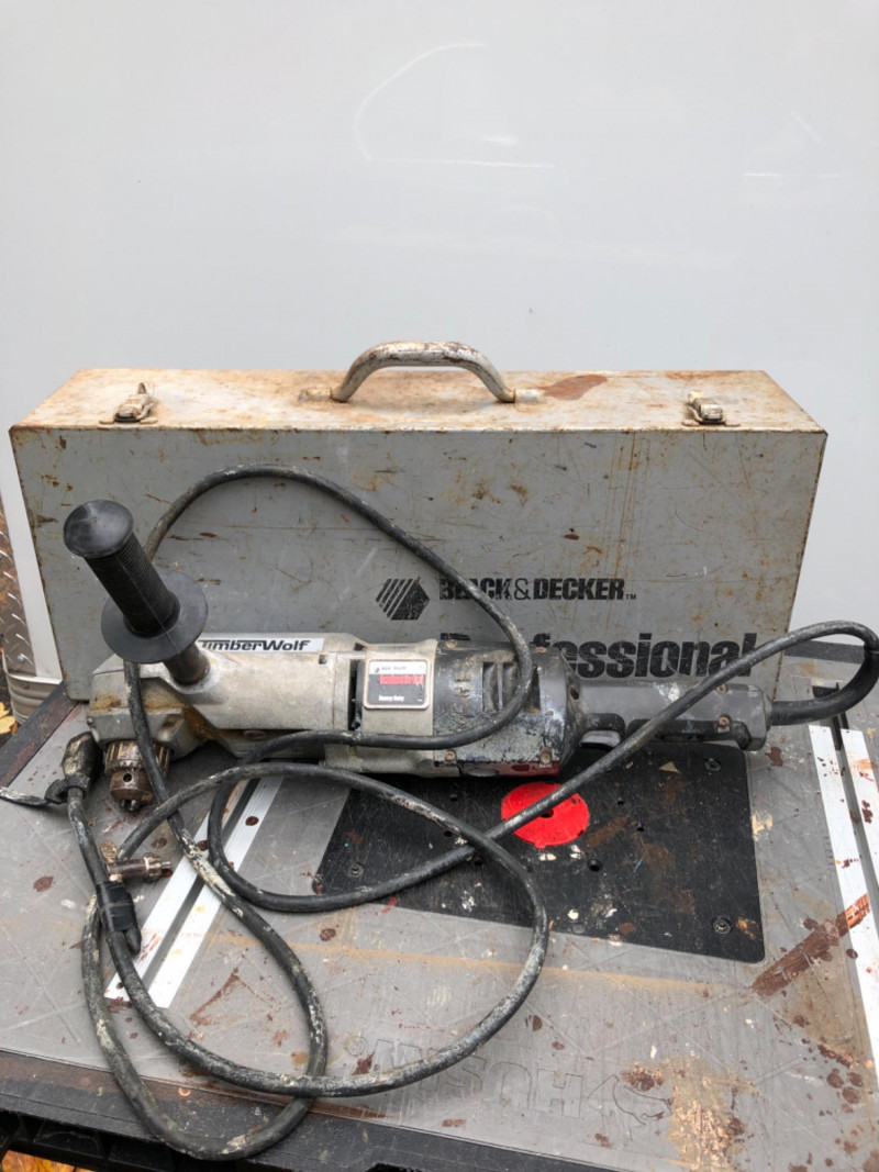Heavy-duty Black & Decker Timber Wolf ½" angle drill. Tested and working. Ideal for framing, plumbing, or tight-access drilling.