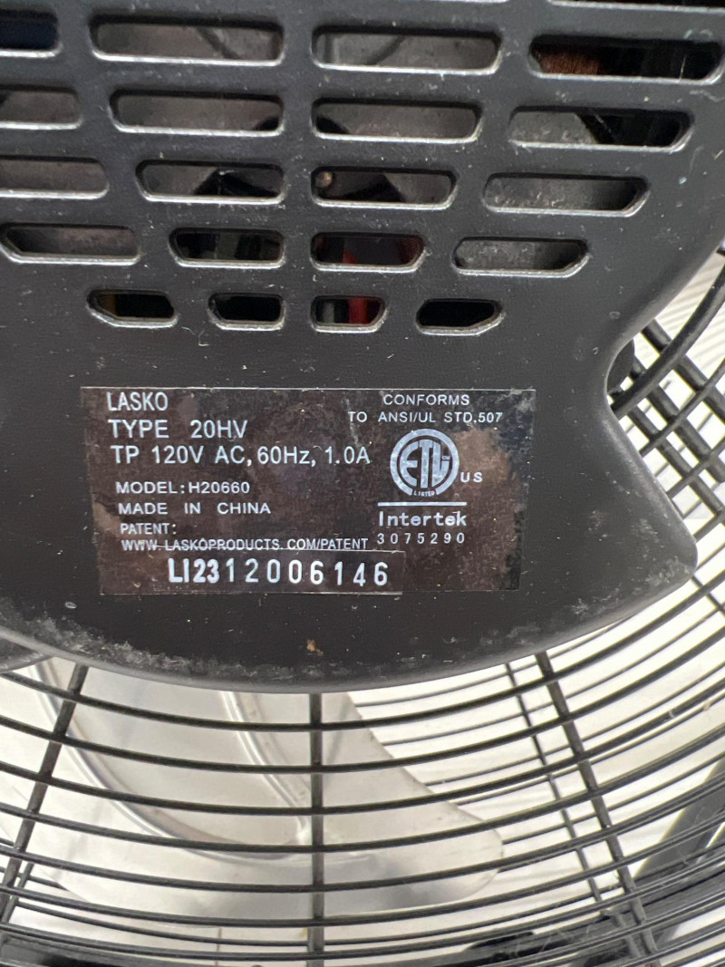 Lasko-brand fan, ideal for shop ventilation, garage cooling, or home use. Known for their reliability and airflow performance, these fans are a practical addition to any workspace or household. Model H20660