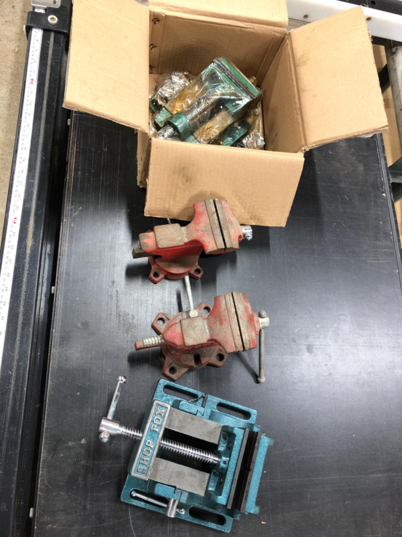 Lot # 174 - Four 4" Workbench Vices – Grizzly, Shop Fox, Home (Japan)