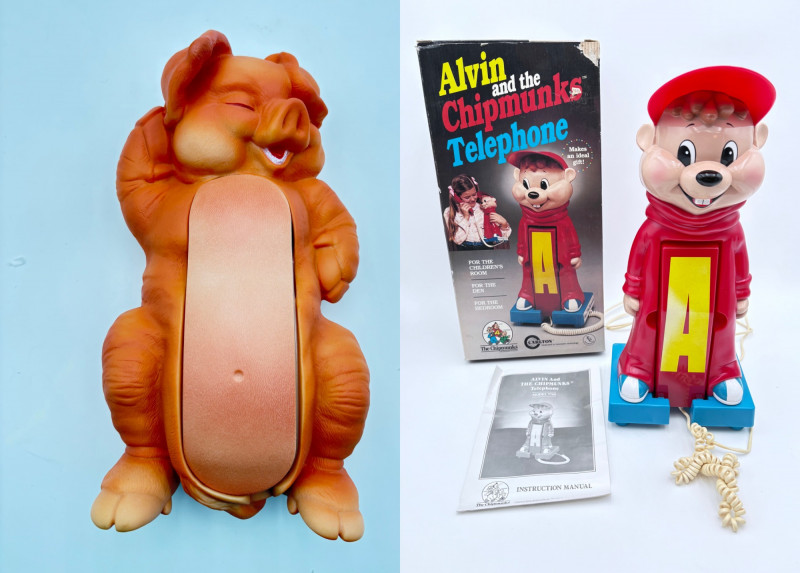 Lot # 119 - Vintage Landline Phones - Pig & Alvin the Chipmunk - Calling Gen Z!