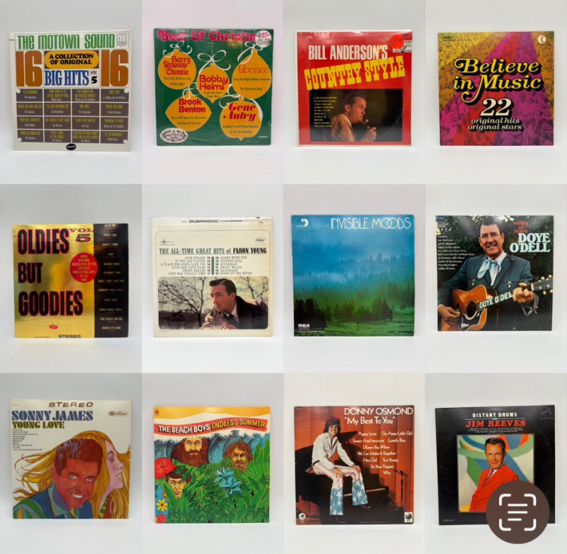 12 vintage LPs for your retro turntable! Our clients LOVED classic country music, Elvis, and popular music of the 1960s/1970s. Their records were well-loved and unless otherwise indicated as "new in packaging", were played a fair amount - check the photos to see which LPs are included in this lot.* Artists in this lot include: Jim Reeves Donny Osmond Beach Boys (double album) Sunny James Bill Anderson "new in package" Doye O’Dell Faron Young +5 compilation albums titled: Invisible Moods (double album) Believe in Music Oldies But Goodies - Volume 5 Best of Christmas "new in package" Motown Sound Original Hits - Volume 5 *Please note that we checked to make sure the correct record was in the correct sleeve, but we did not test for condition.