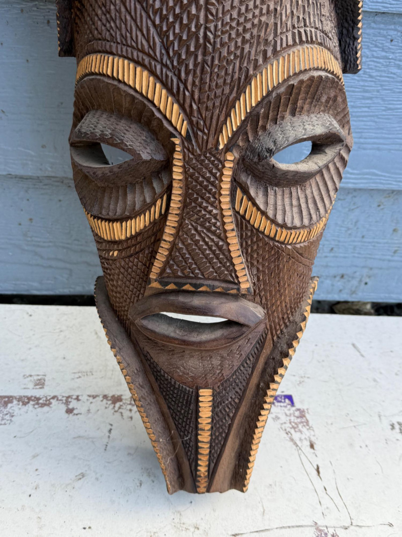 Lot # 31 - African Maputo Mozambique Wood Carved Mask – Tribal Motif