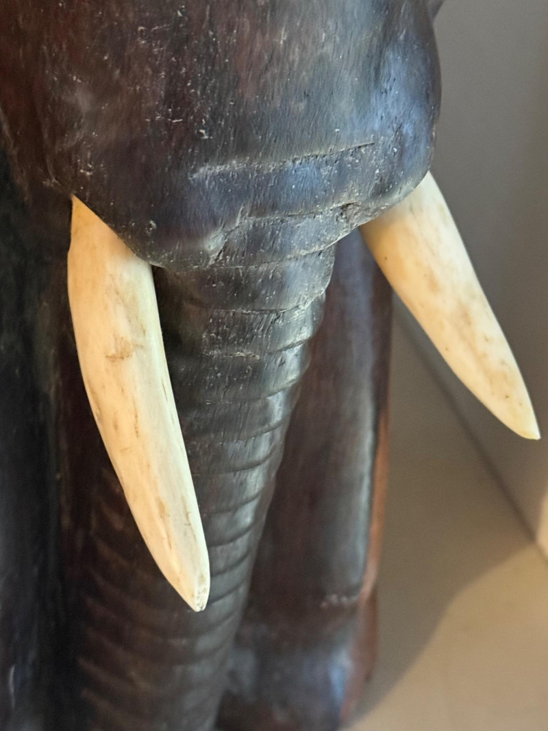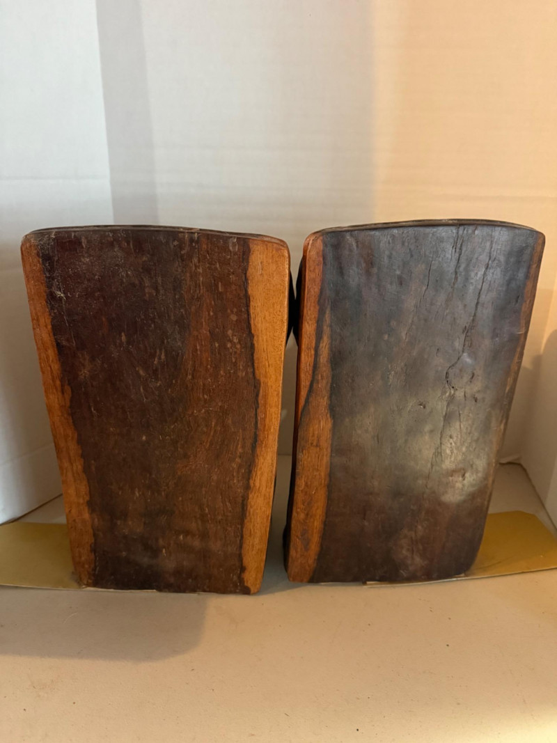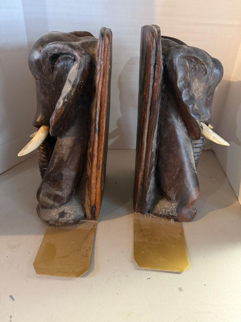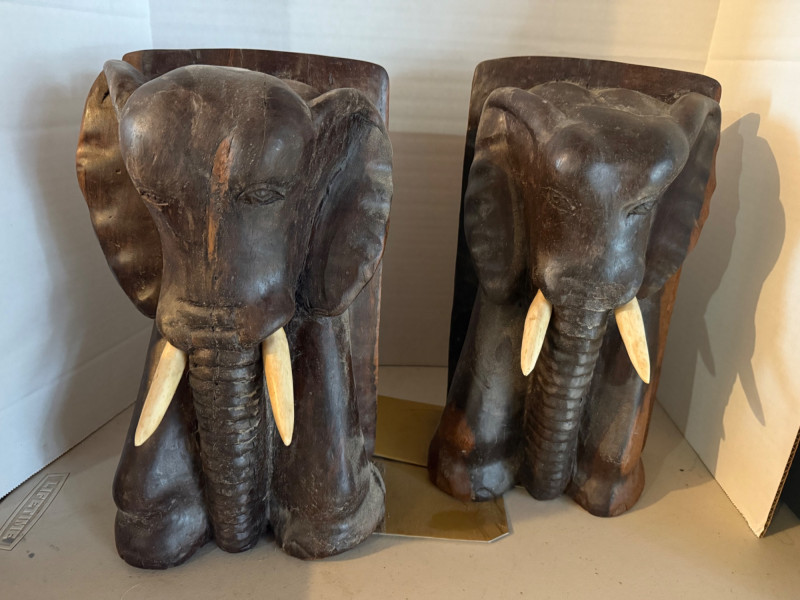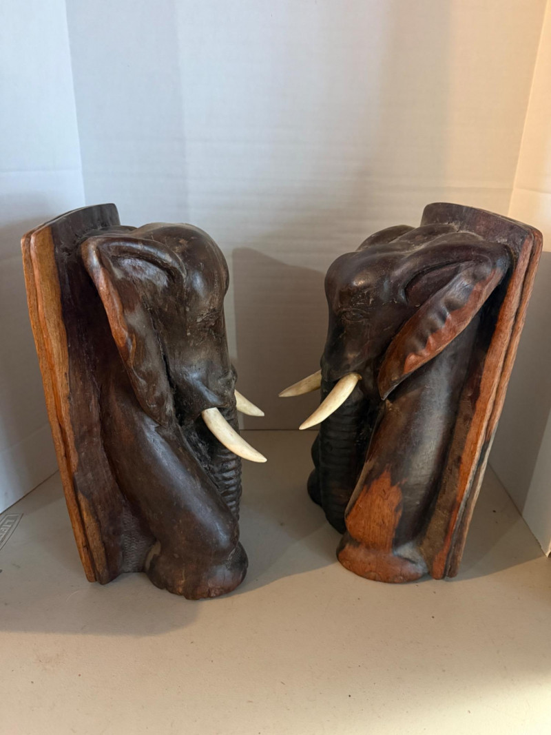 Lot # 48 - Hand-Carved Elephant Head Bookends with Bone Tusks