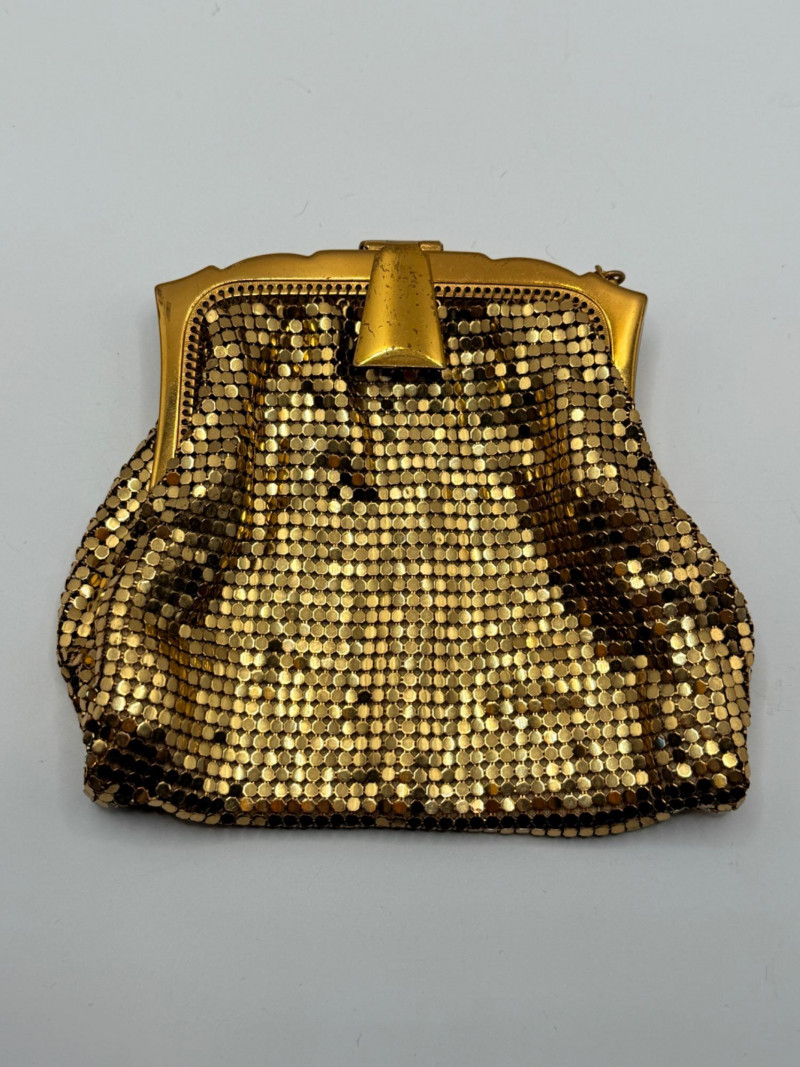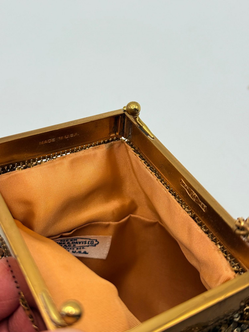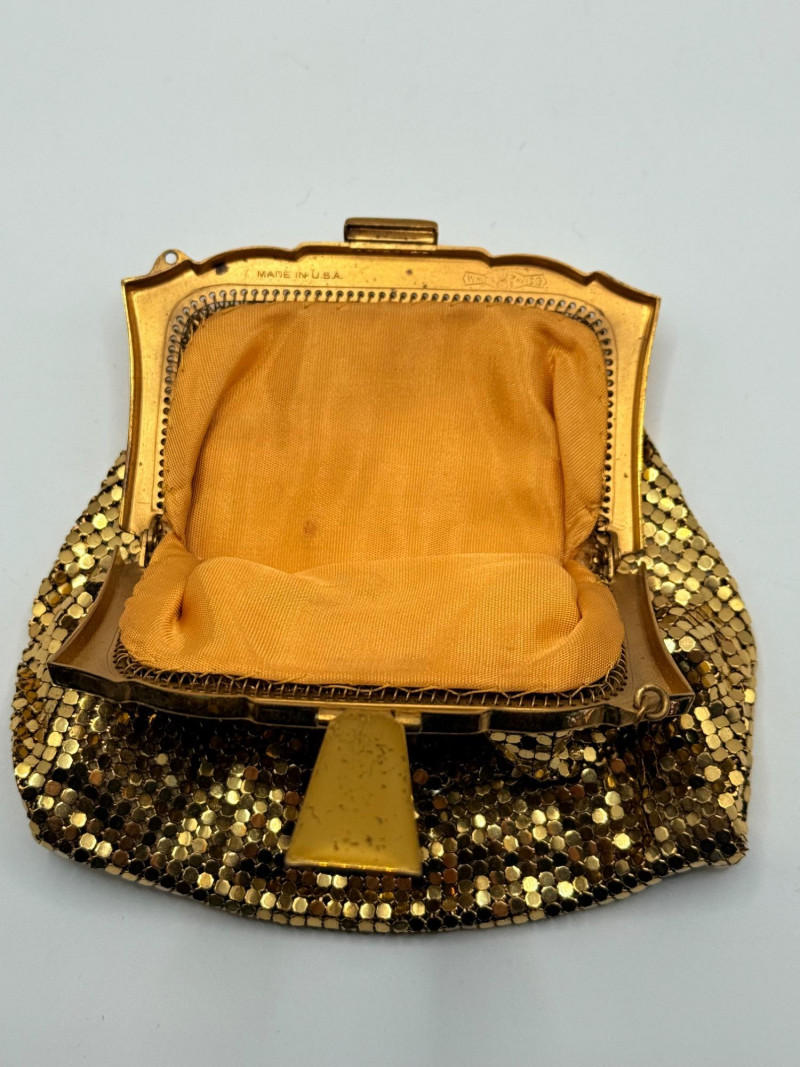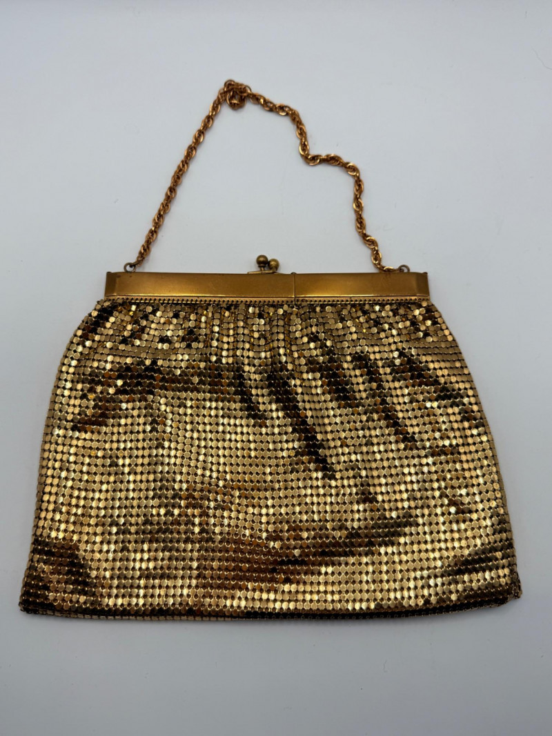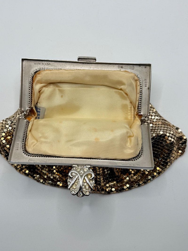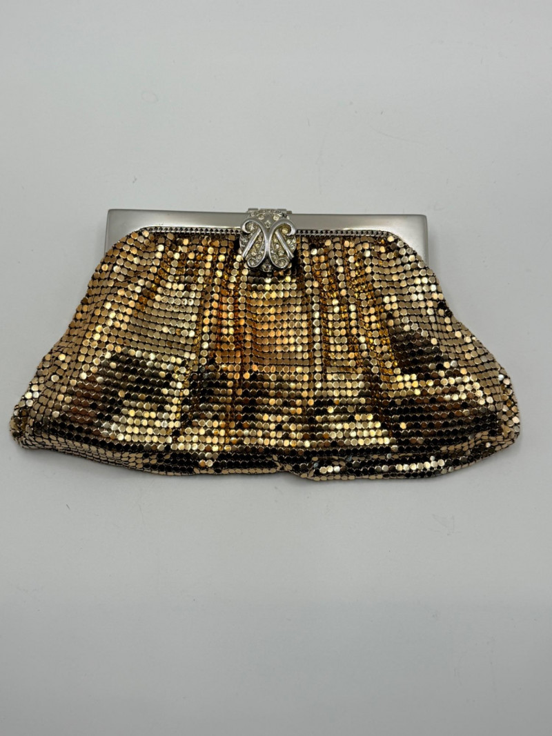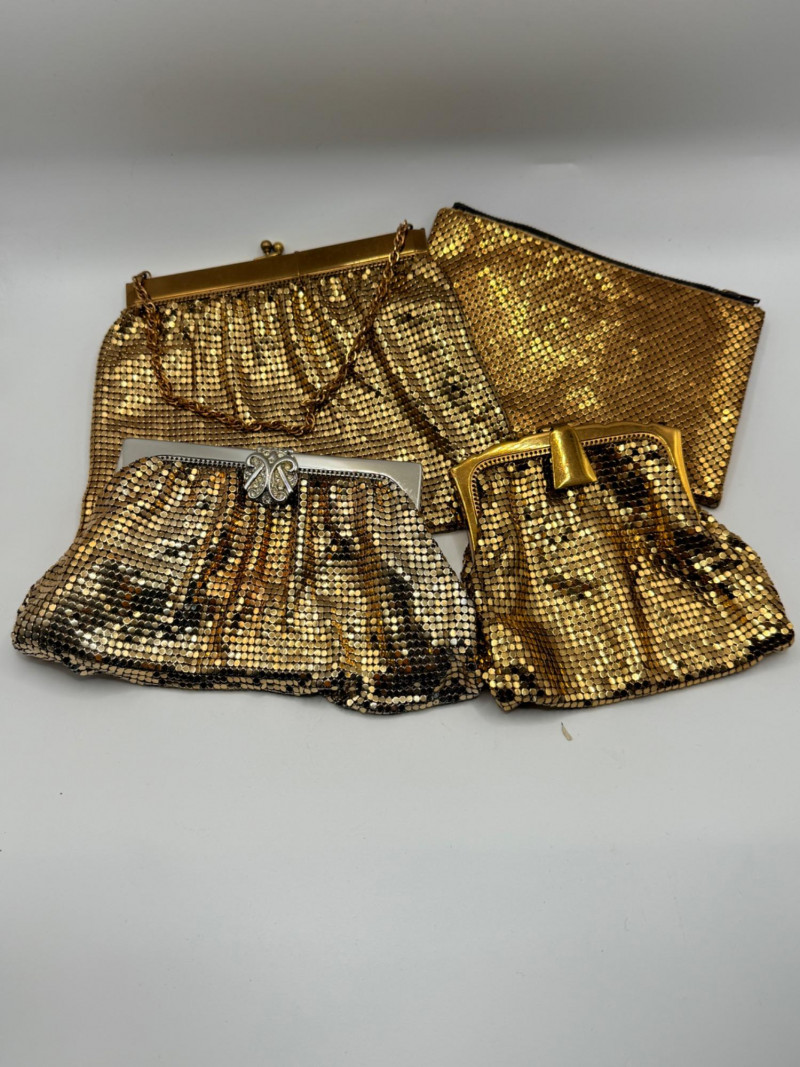 Vintage Whiting & Davis Evening Bags: A Glamorous Legacy These Whiting & Davis evening bags are exquisite examples of mid-century fashion elegance and craftsmanship. Here's a closer look at their defining features:Design & MaterialsAll four purses feature Whiting & Davis’s iconic gold metallic mesh, known for its shimmering finish and fluid drape.The mesh construction is both durable and decorative, offering a luxurious texture that catches the light beautifully.Clasp & Handle DetailsEach bag showcases a unique closure:One includes a rhinestone butterfly clasp, adding a touch of whimsy and sparkle.Others feature classic kiss-lock or sleek metallic fastenings, typical of vintage evening styles.Some bags are equipped with delicate chain handles, allowing for versatile wear as either clutches or shoulder bags.