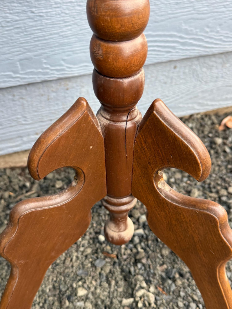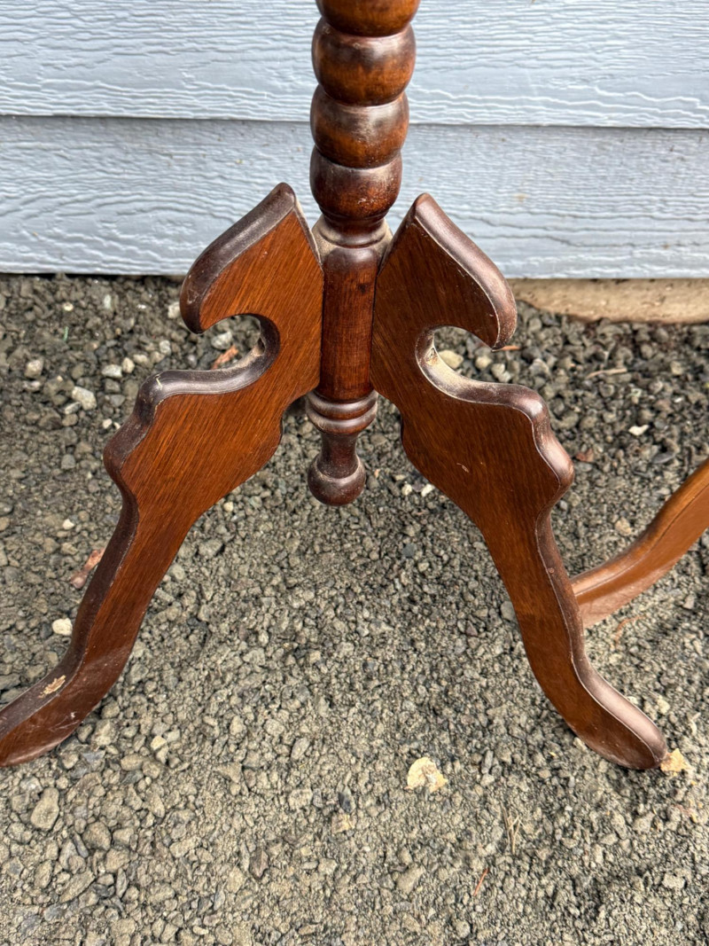Lot # 122 - Pair of Vintage Wood Pedestal Tables – Turned Columns & Tripod Bases
