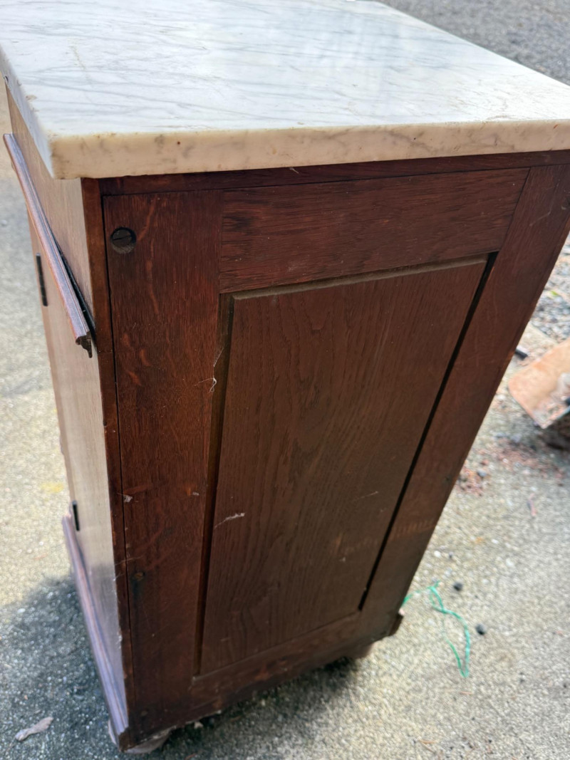 Lot # 201 - Antique Wood Cabinet with Marble Top