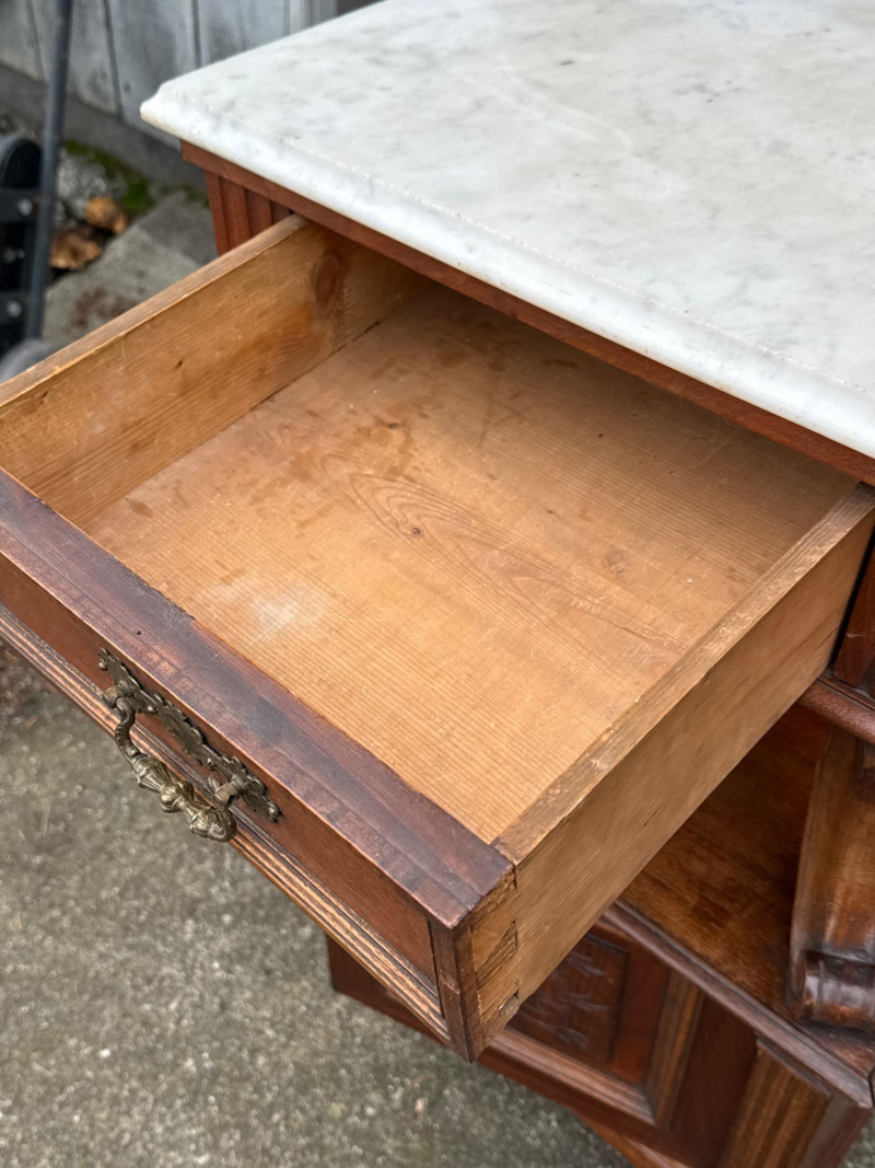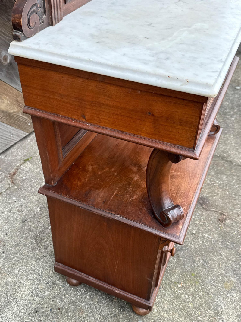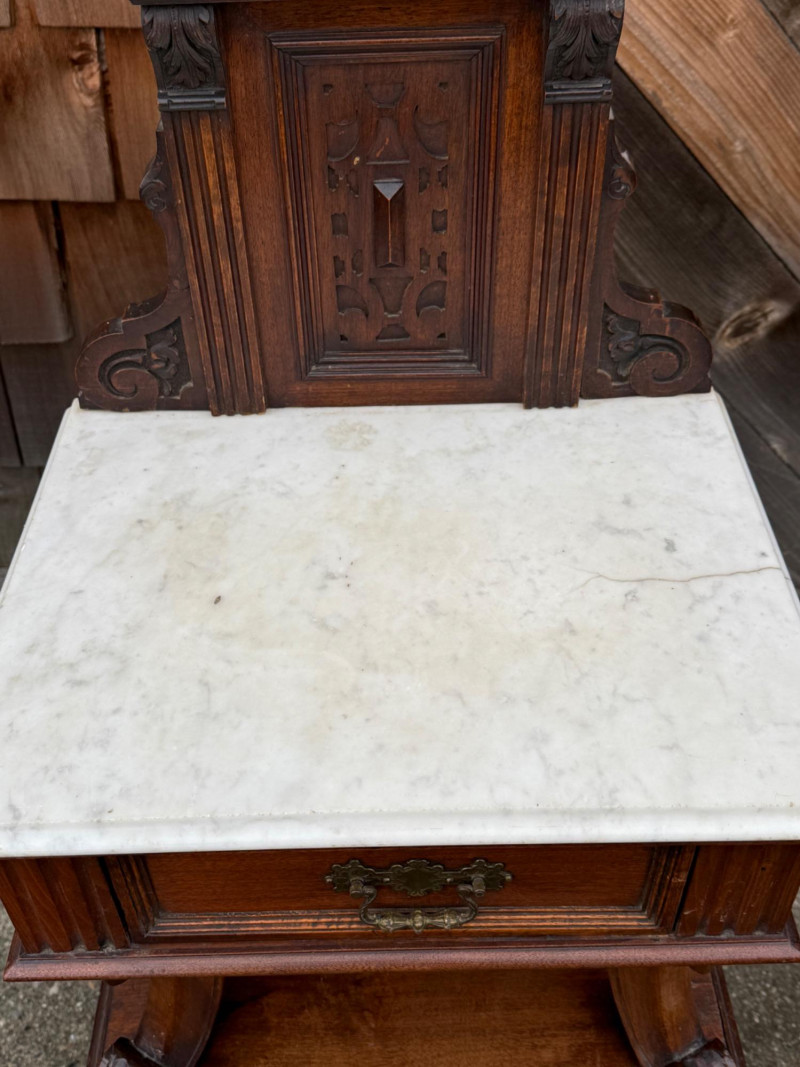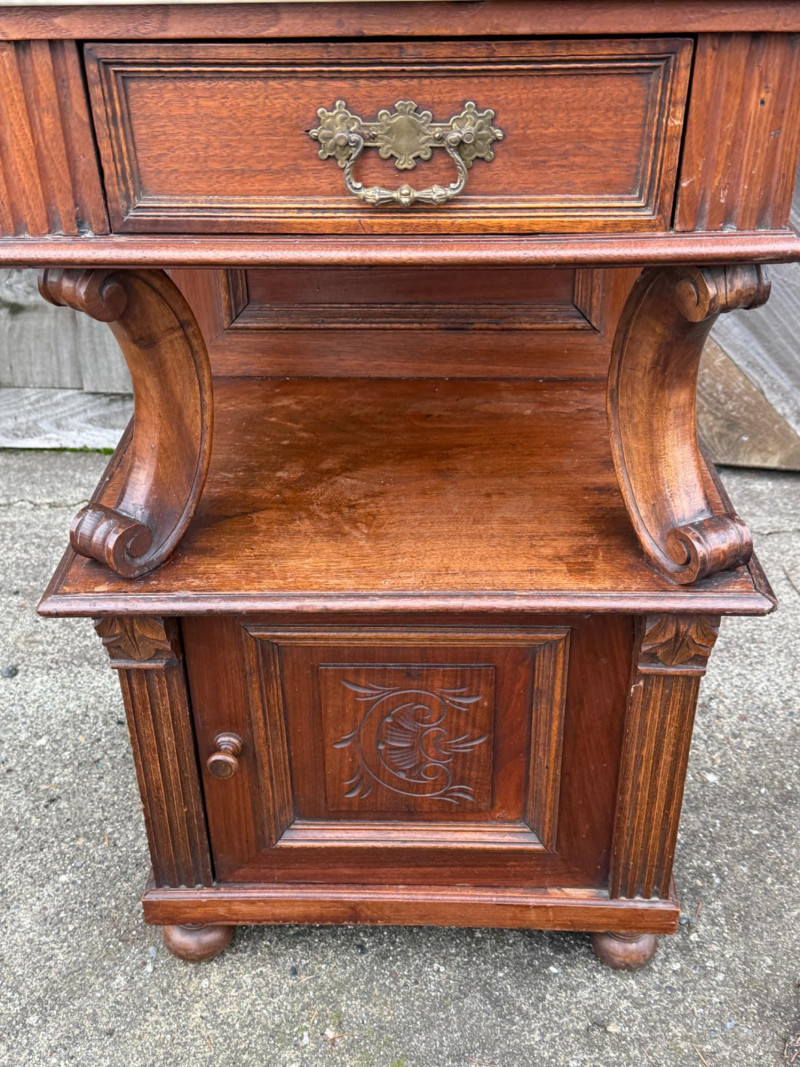 Lot # 204 - Antique Victorian Walnut Wash Stand – Marble Top with Carved Details