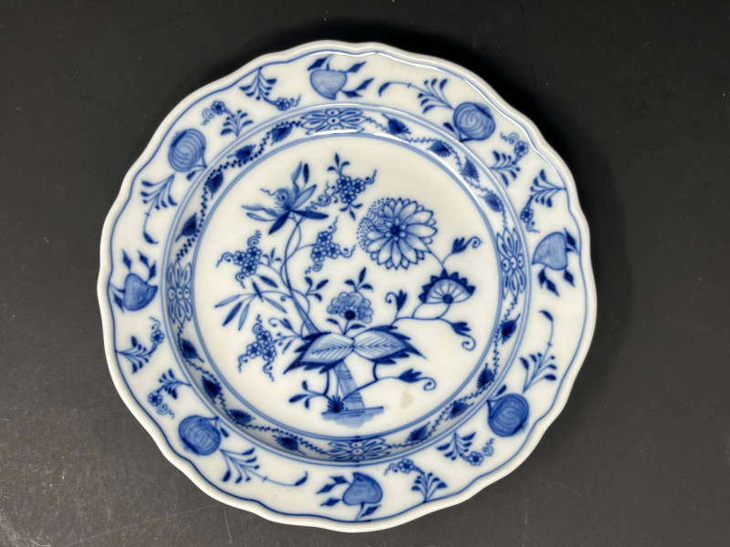 Meissen porcelain, specifically featuring the iconic "Blue Onion" pattern.