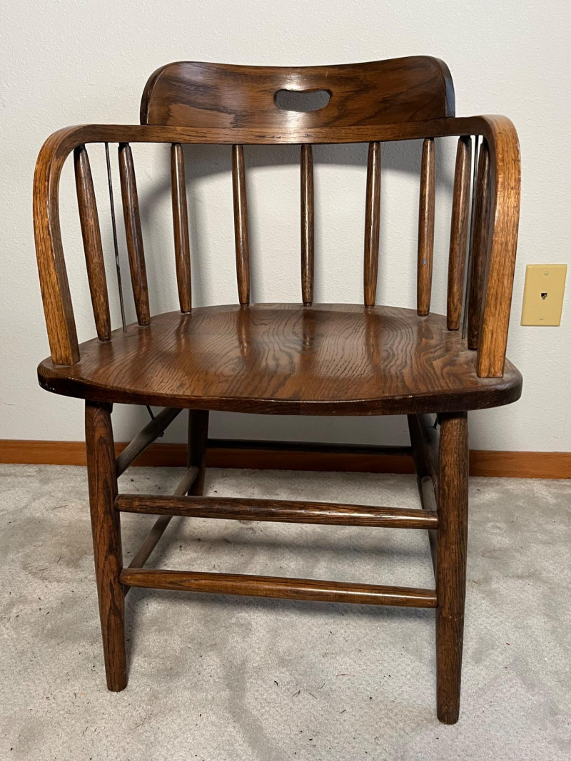 Add a touch of timeless style to your space with this matching pair of vintage office chairs from Boling Chair Co., a respected name in American furniture manufacturing. These chairs blend form and function with classic mid-century lines, sturdy construction, and enduring appeal. Details: Manufacturer: Boling Chair Co., Siler City, North Carolina Era: Mid-20th century (likely 1950s–1970s) Quantity: 2 matching chairs Materials: Solid wood frames with upholstered seats and backs Style: Mid-century modern / industrial office Color: [Insert upholstery and wood tone—e.g., olive green vinyl with walnut-stained wood] Features: Curved backrests, tapered legs, and original hardware Condition: