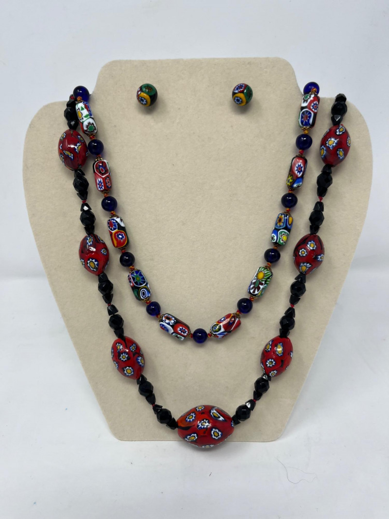 Lot # 61 - Vintage Millefiori Glass Jewelry Set – Two Necklaces & Earrings