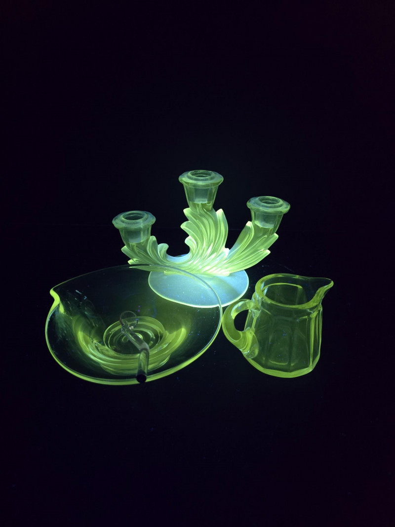 Lot # 72 - Mid-Century UV Glass – Creamer, Dish, Candle Holder