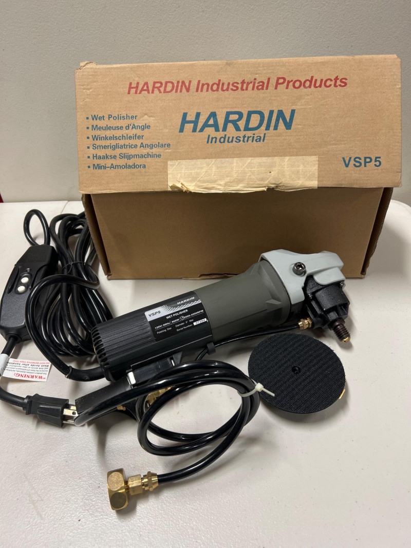 Designed for precision and durability, the Hardin VSP5 Wet Polisher is a contractor-grade tool ideal for polishing granite, marble, concrete, and other stone surfaces. With an 900-watt motor and variable speed control ranging from 2,000 to 4,500 RPM, 120V, it offers the flexibility needed for both coarse grinding and fine finishing. Its water-feed system reduces dust and cools the surface during operation, making it suitable for wet polishing tasks in fabrication shops, restoration projects, and jobsite prep. Ergonomic grip and splash guard enhance control and safety. Brand: Hardin Model: VSP5 Type: Wet Polisher Motor: 900W Speed: Variable (2,000–4,500 RPM) Features: Water-feed system, splash guard, ergonomic grip Application: Stone polishing, concrete finishing, tile work Need Shipping?: Contact LoopCycle