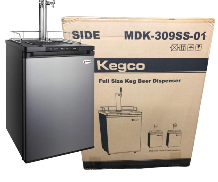 Kegco full‑size keg beer dispenser, brand new in box. Designed for home or commercial use, this unit provides reliable draft service with professional features. Includes full‑size cabinet, tap system, and cooling components for consistent pour quality. Retails at $928 (Amazon), this dispenser offers durability and performance for parties, events, or everyday enjoyment. Main photo is representative.