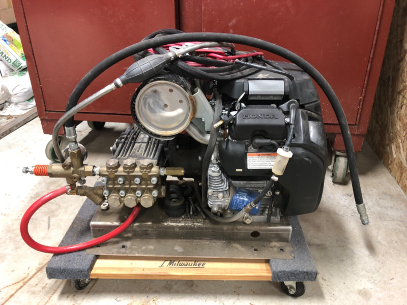 Water Dragon Pressure Washer: Unit has a UDOR CKC 38/20 S Pump with a 2900 PSI Rating with 10 Gallons Per Minute Output of Water Unit has a Honda GX690 Motor with a net power rating of 22.1 horsepower Owner used this pressure washer in the back of their truck and wired it with jumper cables so that they could hook up power to their truck battery to start the unit