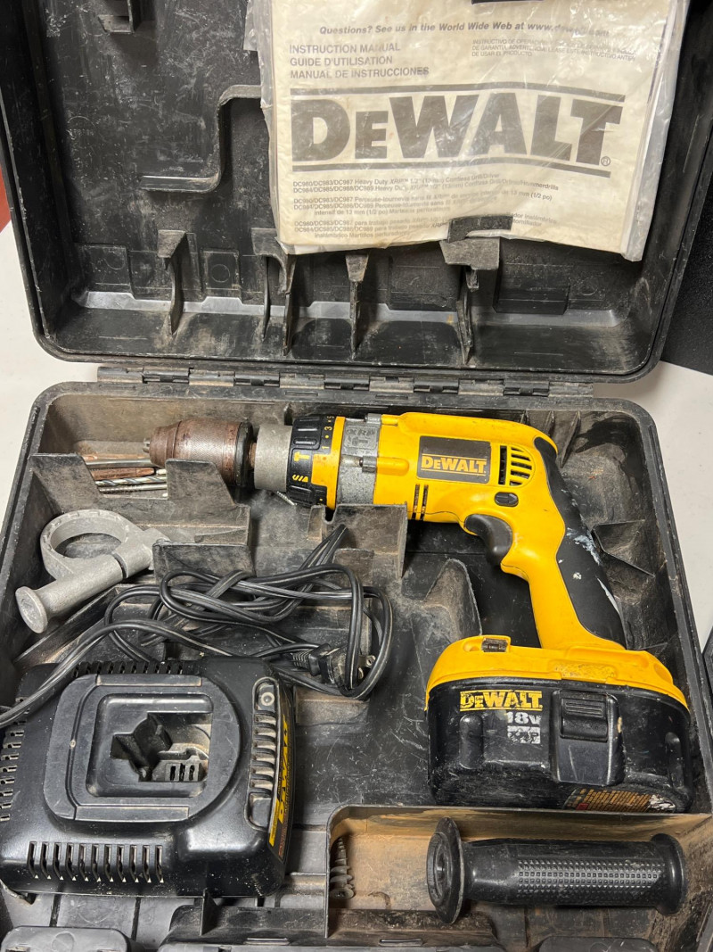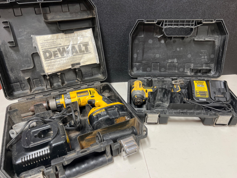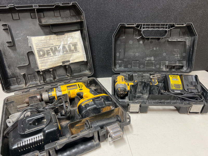 Includes two professional‑grade DeWalt cordless tools, ONE battery and a charger (two cases): DeWalt DCF887 ¼" Impact Driver – Compact yet powerful, delivering up to 1,825 in‑lbs of torque. Features a brushless motor, three speed settings, and precision drive technology for controlled fastening. Ideal for driving screws, bolts, and fasteners in demanding contractor applications. DeWalt DC989 ½" Heavy Duty Drill/Driver – Rugged cordless drill/driver designed for heavy‑duty drilling and fastening. Offers high power output with variable speed control, ergonomic grip, and durable construction for shop and jobsite use. Together, these tools provide contractors with versatile solutions for fastening and drilling tasks. Known for durability and performance, DeWalt cordless tools are trusted across residential, commercial, and industrial projects.