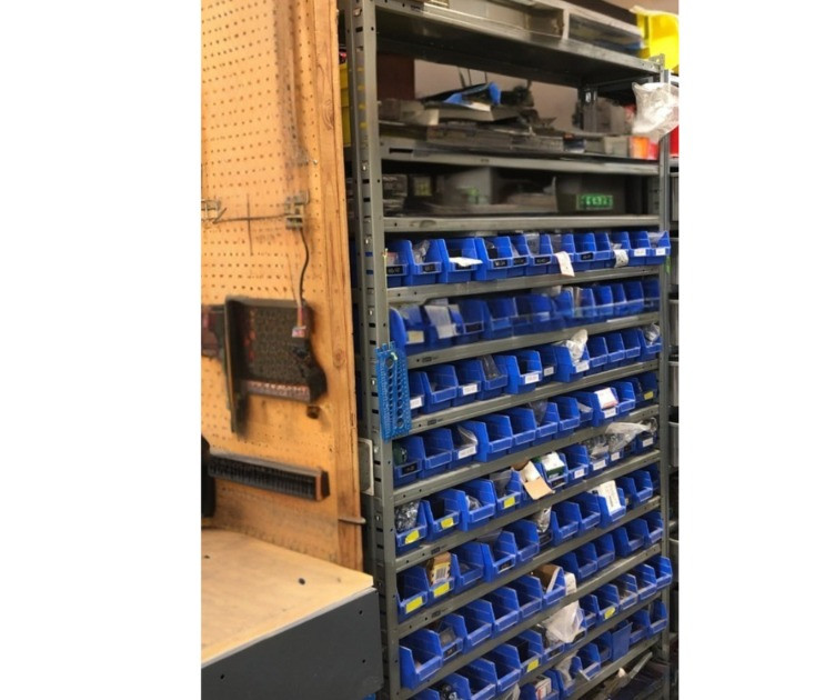 Heavy‑duty industrial metal shelving unit with 13 shelves. Durable contractor storage solution for tools, hardware, and shop supplies. Does not include blue bins or hardware variety. These will be available at pickers sale post auction. Special Note: Unit appears to be assembled with interlocking rails and supports. Metal shelves. Buyer dissassembles unit or brings vehicle that can transport unit as is. Located at parking lot level and near large bay door of shop structure. Preference is for buyer to arrange for pickup early on first day of pickups or later on last day of pickups.