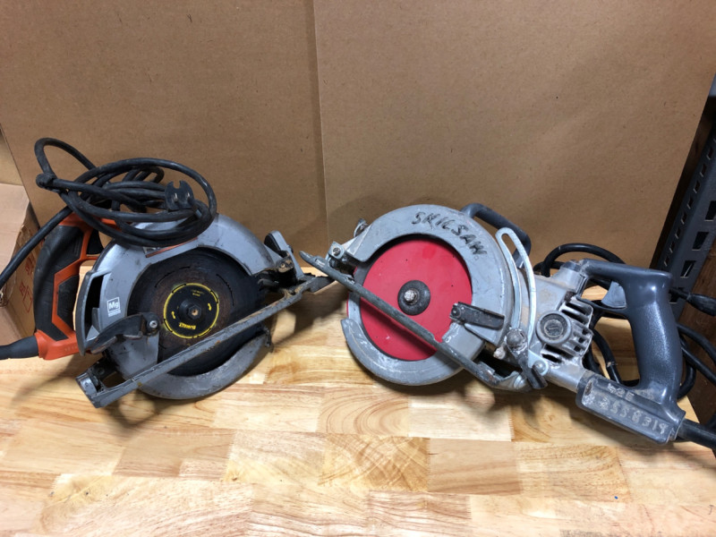 Pair of professional‑grade saws including a Rigid skill saw and a Craftsman worm drive saw. Rigid Skill Saw: Reliable circular saw designed for precision cutting of wood and contractor materials. Craftsman Worm Drive Saw: Heavy‑duty worm drive design delivers extra torque and durability, ideal for framing and tough cuts. Utility: Together, these saws provide versatile cutting solutions for contractor shops, framing projects, and industrial applications. Condition: Both units tested and powered on.