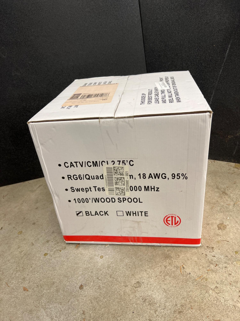 Lot # 189 - CATV Black 1000 Feet on Wood Spool - Unopened Box