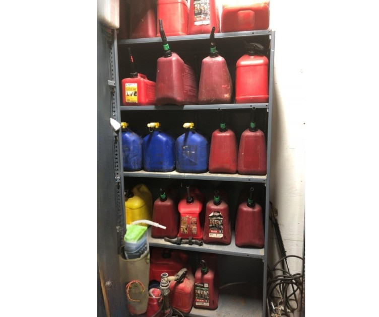 Lot # 191 - Metal Organization Unit with 5 Shelves & 20 Fuel Containers