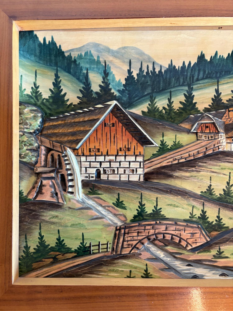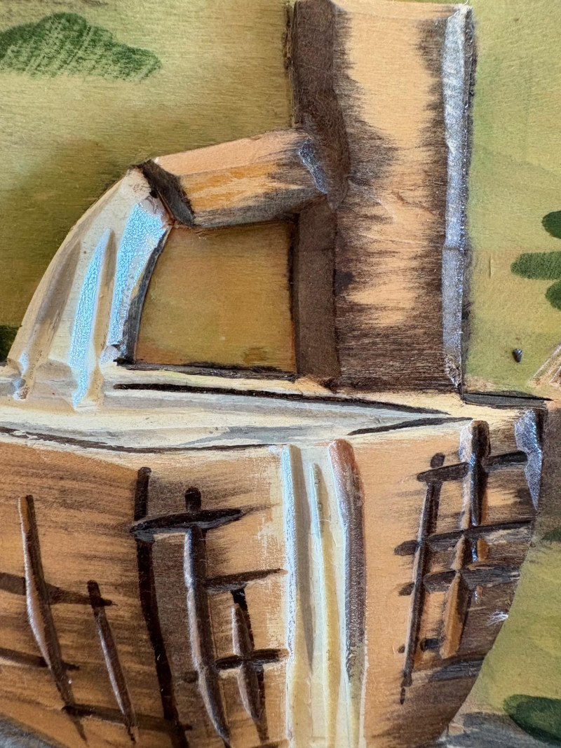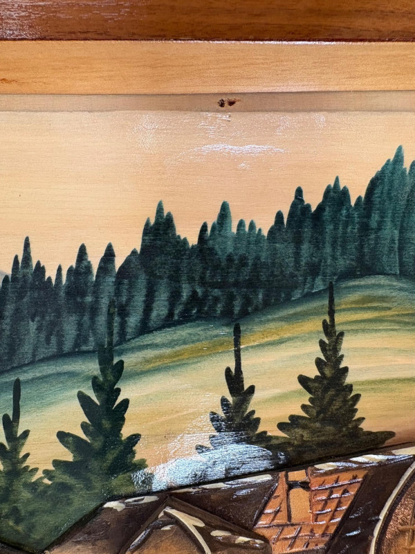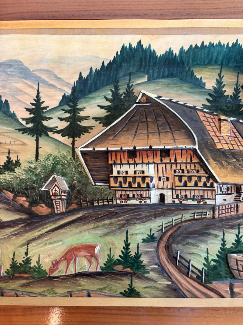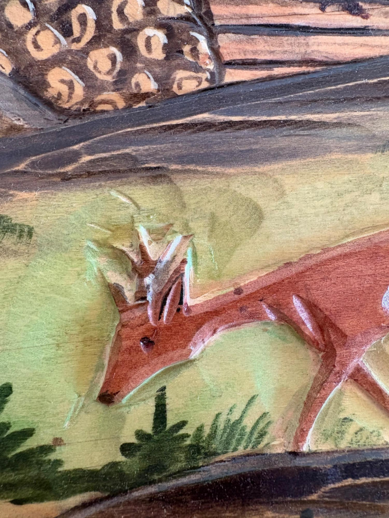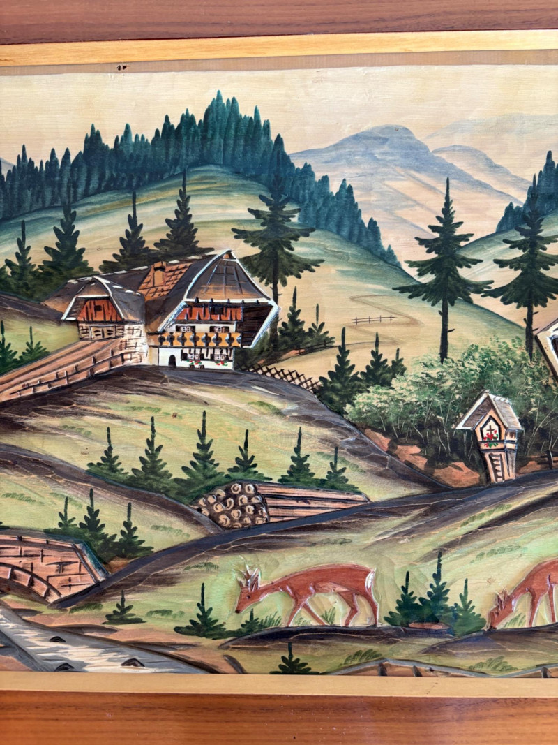 Unique 3-D MCM hand-carved & painted wood Black Forest-style