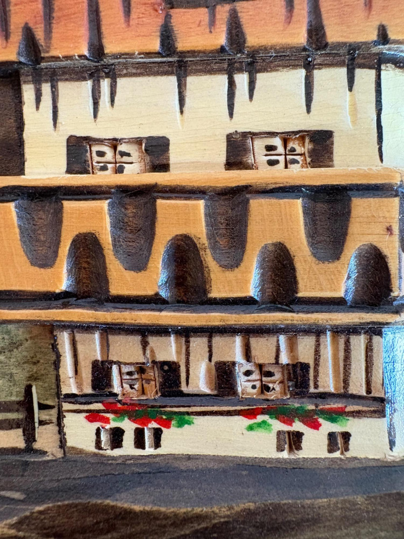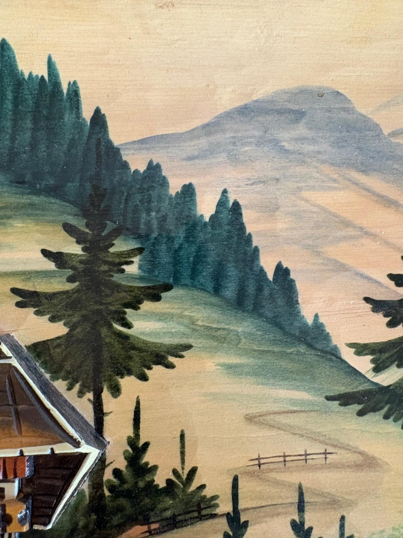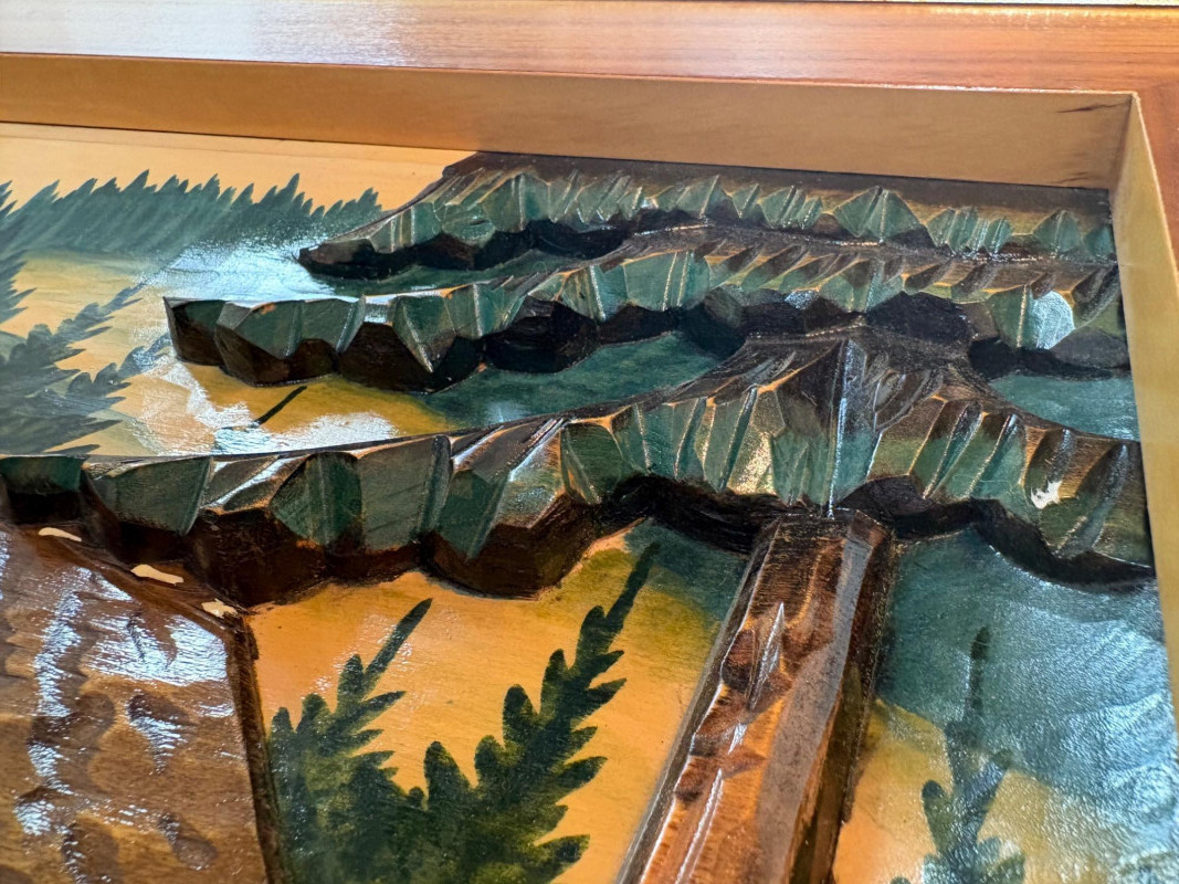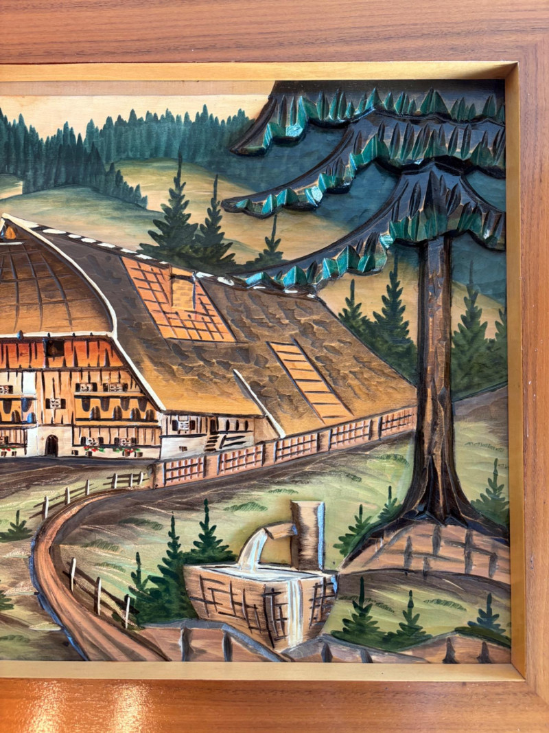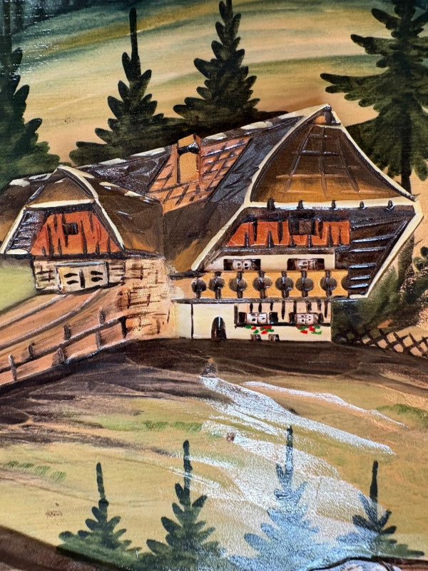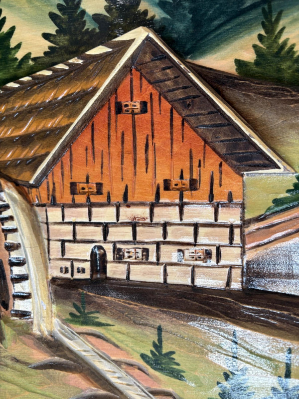 Unique 3-D MCM hand-carved & painted wood Black Forest-style