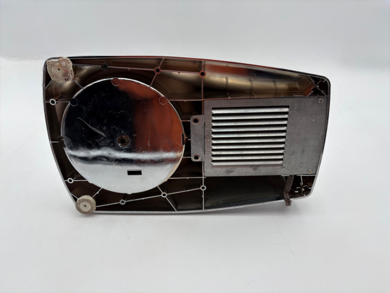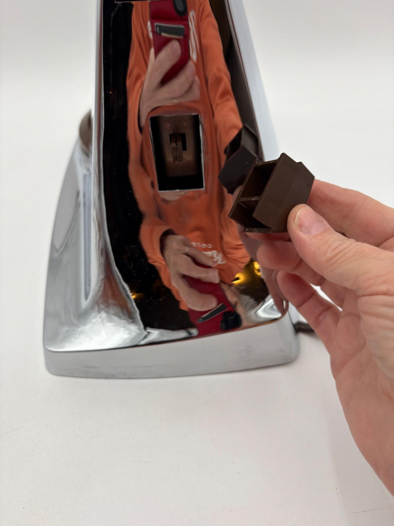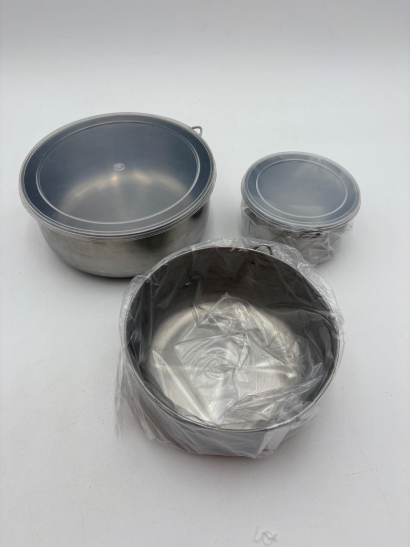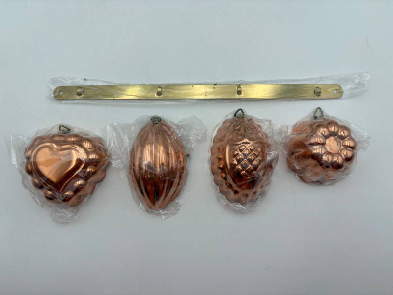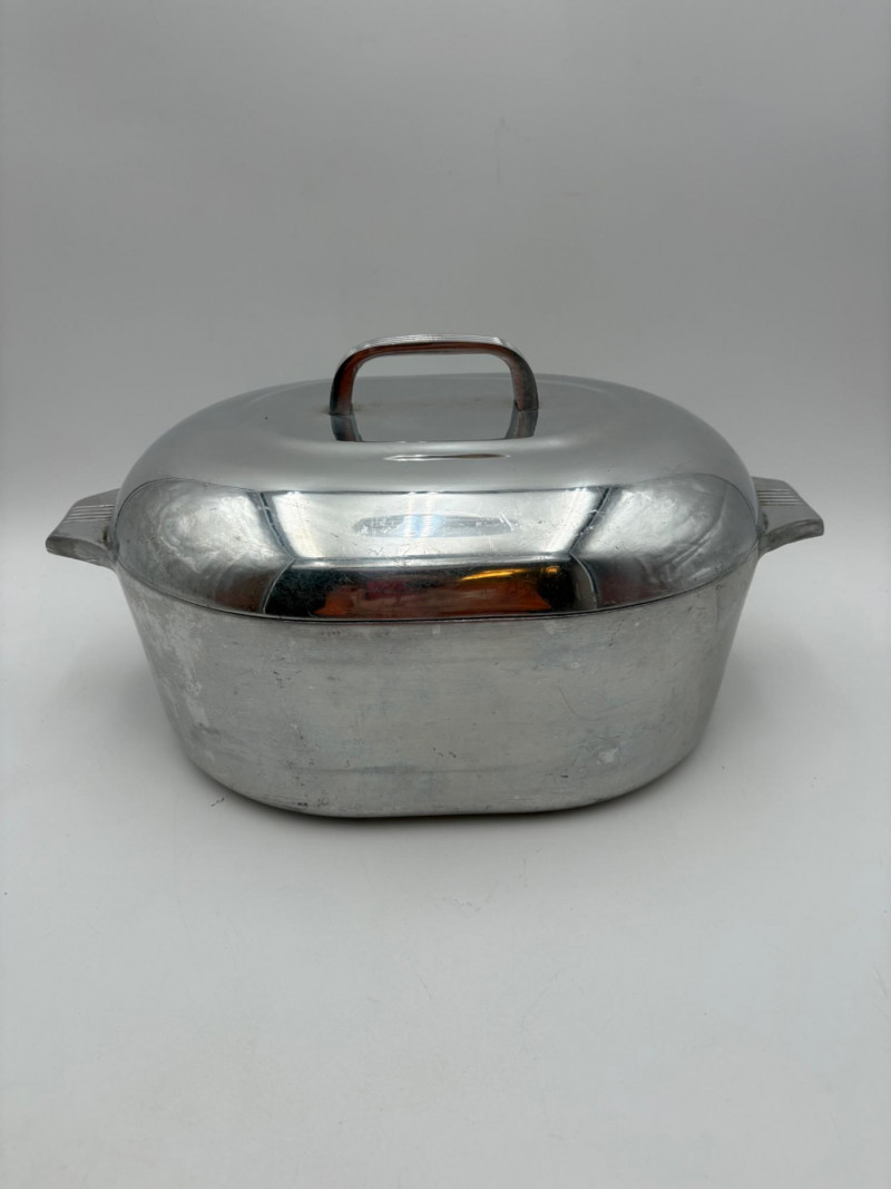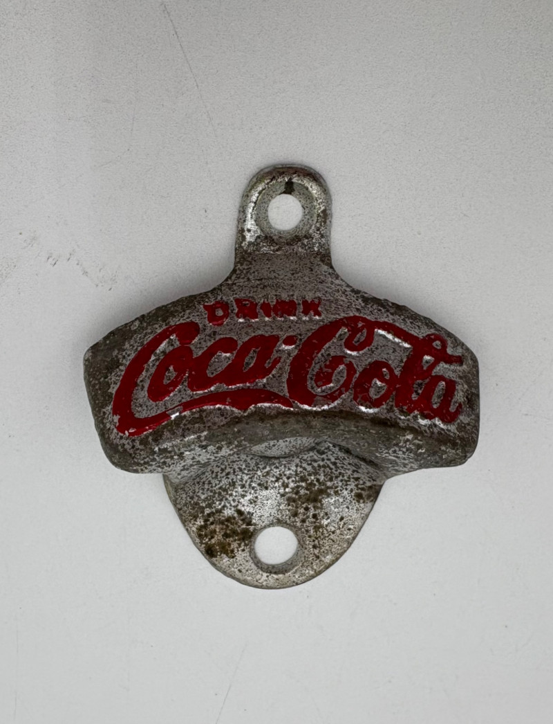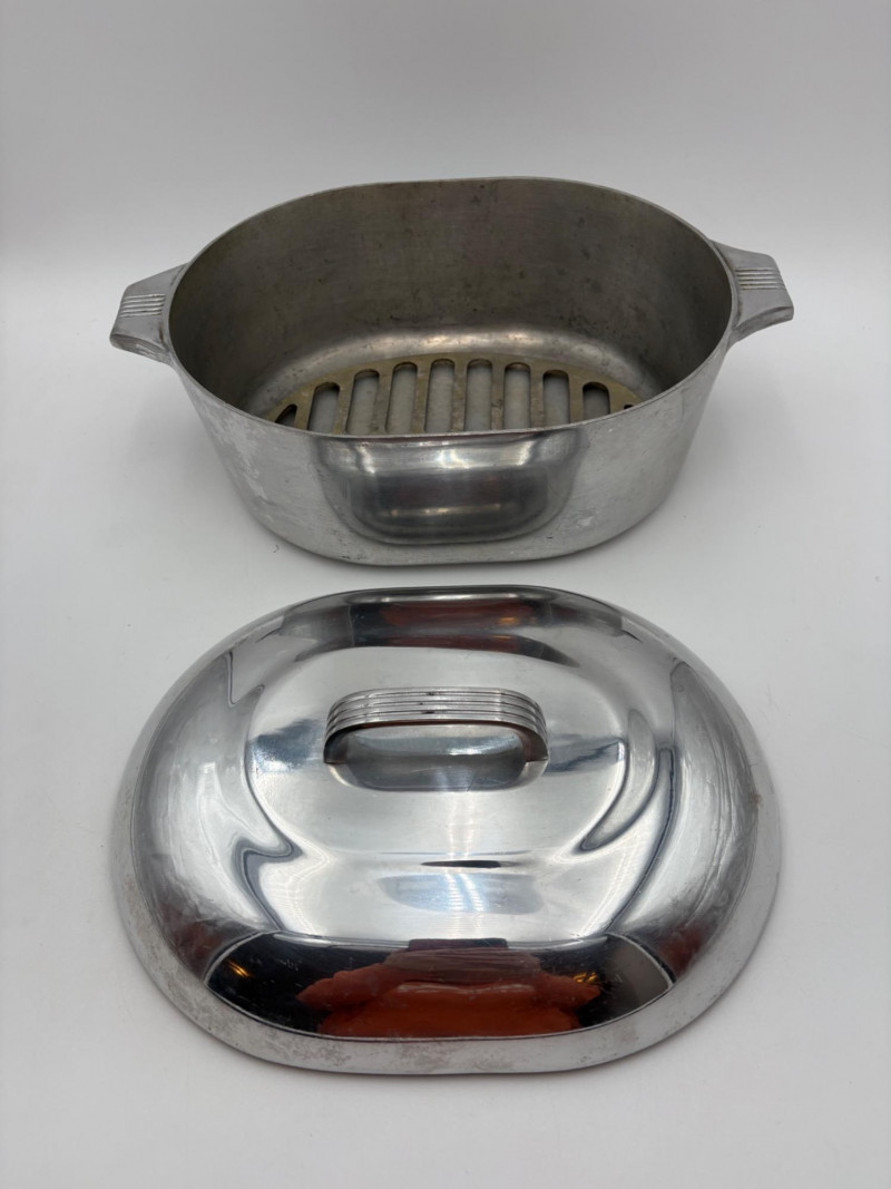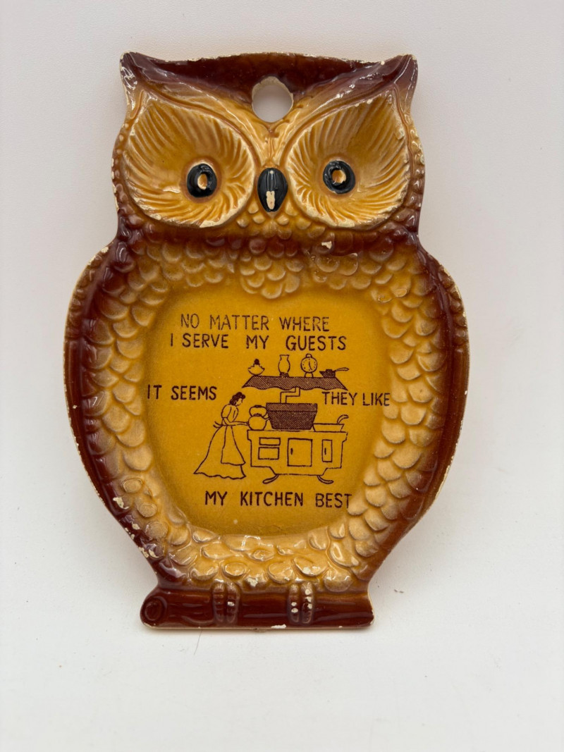 Wonderful mix of items for your vintage kitchen! - Sunbeam Mixmaster Power Plus stand mixer. Terrific MCM lines - also much lighter than the KitchenAid we own! Comes with large & small metal mixing bowls, pair of beaters, and pair of dough hooks. Powers on & changes speeds with dial at back of head. Measures 15" H x 14" W x 9" D. 2-prong cord and underhead light is working. Please note that the safety lock button on the back of the support has broken - see last photo in section - but the lock still works and button could probably be glued back on. Can operate with/without the button. Also needs new foot pad on base - see underneath photo. - Wagner Ware Magnolite lidded metal roasting pan - model # 4265 – P. Pan measures 8" H x 16" W x 11" D. Comes with fitted trivet inset. - Minute Minder timer from Lux in white with red lettering. - Stainless steel storage bowl trio set. 5/8 quart bowl, 1 quart bowl and 1 1/2 quart bowl. Lids present for larger and smaller bowls. - Betty Crocker compact food processor/mini chopper. Powers on & whirls. 1990s. - Kitchen King super quick manual mixer for whipping juices and mayonnaise. All parts appear to be present. 1976. - Ergonomic vintage metal eggbeater. Measures 10.25" L. - Classic Swing-Away metal can opener with white vinyl-covered handles. - Cast metal Coca-Cola wall mount bottle opener. - Rival hand crank grinder. Appears to work but needs to have the clamping mechanism on the bottom tightened. - Tupperware portion cups - approximately 2" H with lids and Tupperware spice grinder/spreader - approximately 8.5" H. - Small wall mount kitchen matchbox holder in pressed tin - measures 6". - Set of 4 copper mini-molds with hanging rack. - Ceramic spoon rest in the shape of an owl - approximately 6.5" H. Sunbeam