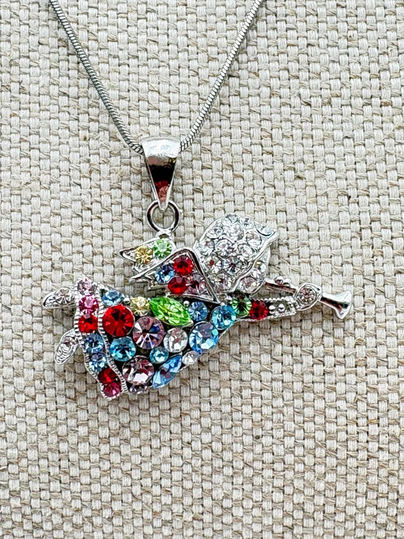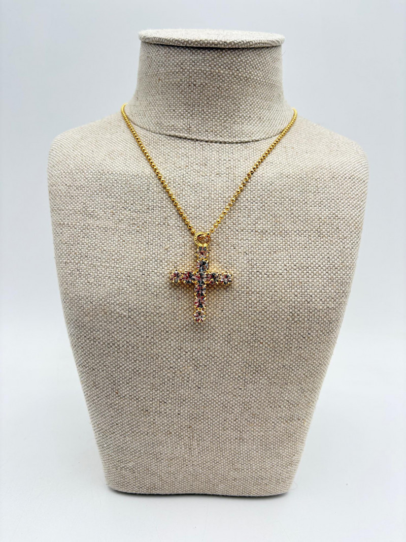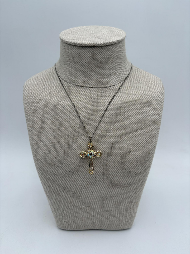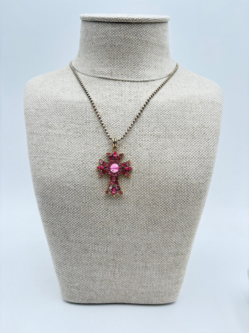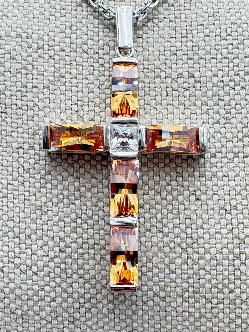 Great group of religious necklaces - 17 assorted necklaces, 3 necklace pendants with not chain, and 2 pins. All with one thing in common: SPARKLE or SHINE!! Different lengths, styles and colors, but all sure to catch one's eye. Good quality costume jewelry with a number vintage pieces. Please see photos for details.