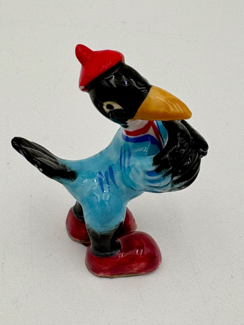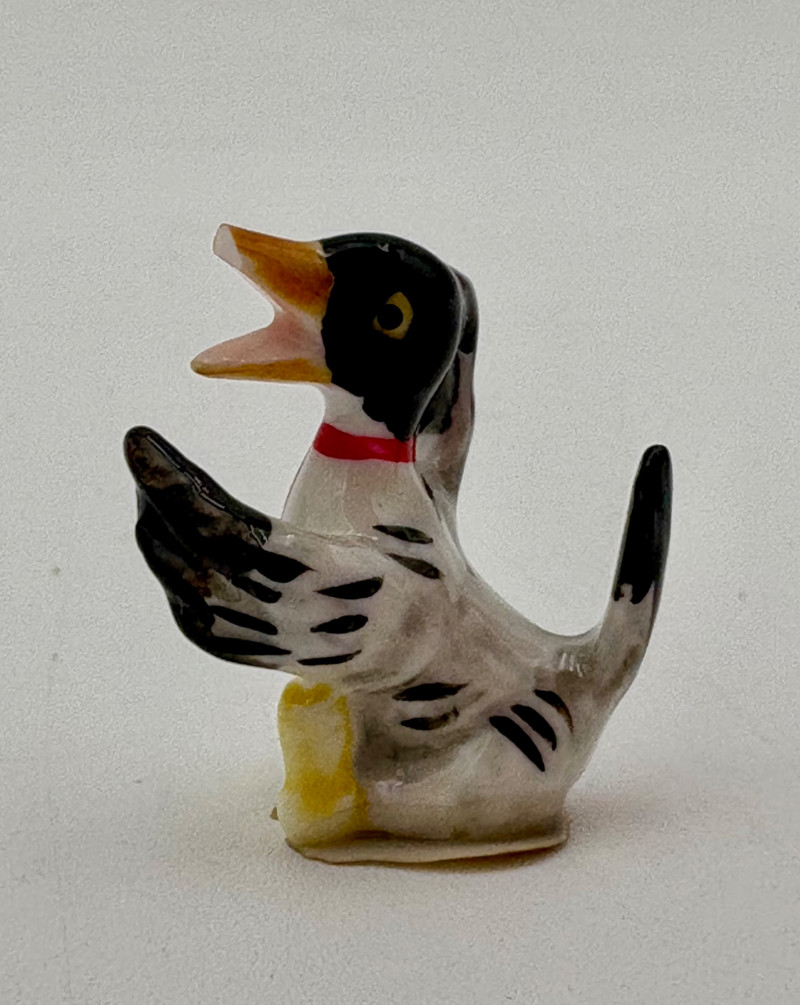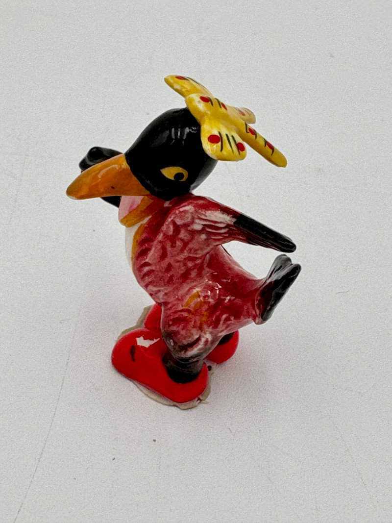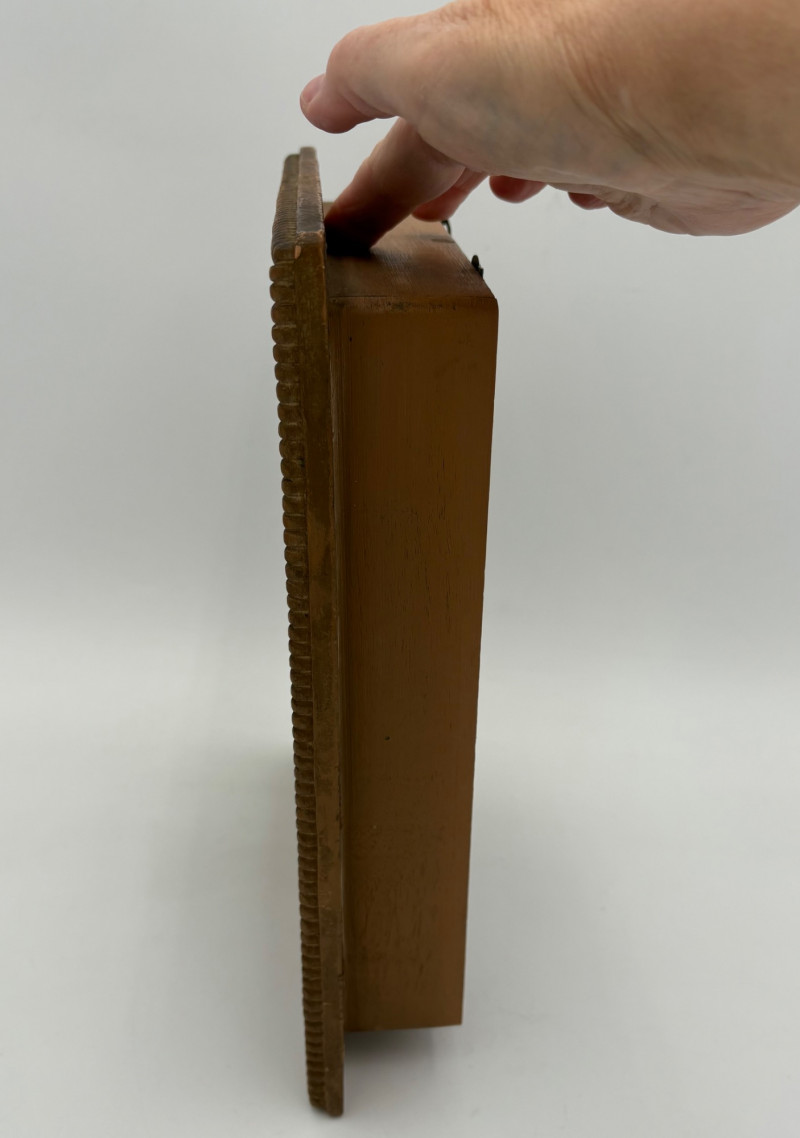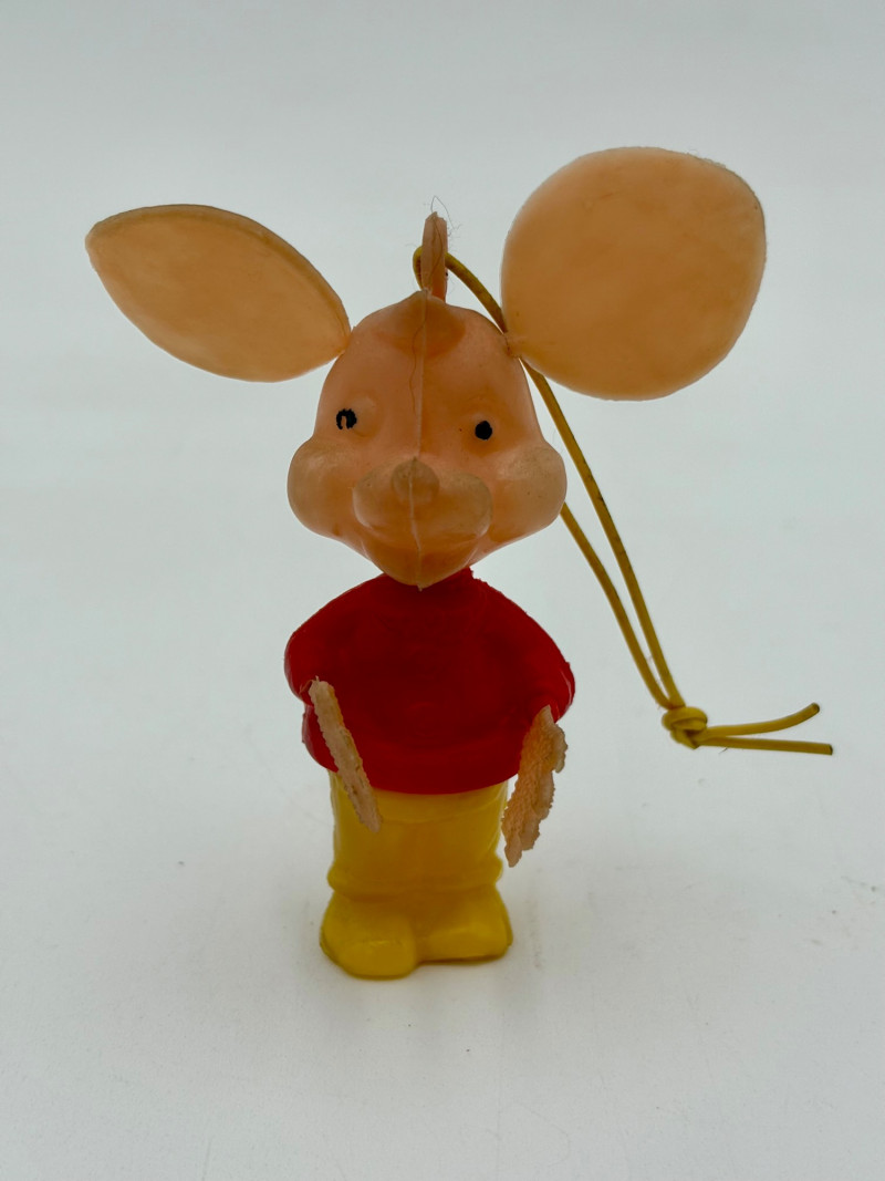 Pair of mirrored MCM wall shelves from SyrocoWood Company of Syracuse. Scalloped interior trim edge with fluted frame. Measure 12” H x 10.5” W x 2.5” D. We added a few vintage starter pieces for you - 3 elves, what appear to be Heckle & Jeckle, a sweet kitty, and 1950s Italian mouse star Topo Gigio! They are in ok shape with no breaks, but some have substantial paint loss - see photos. Syroco