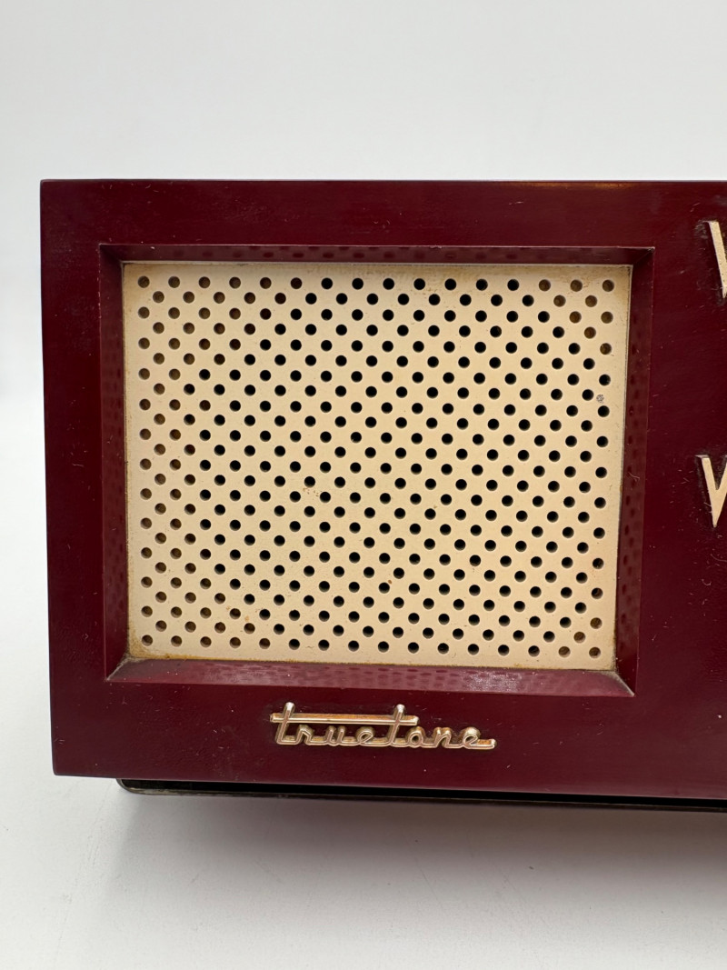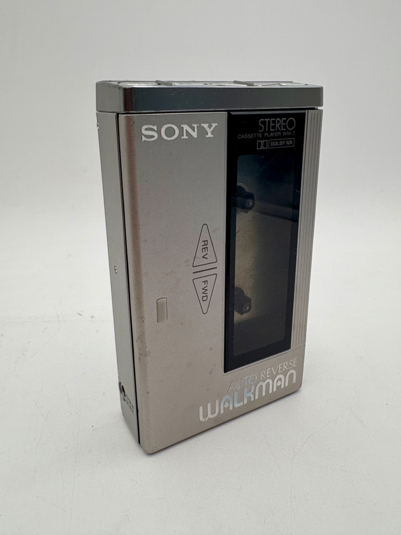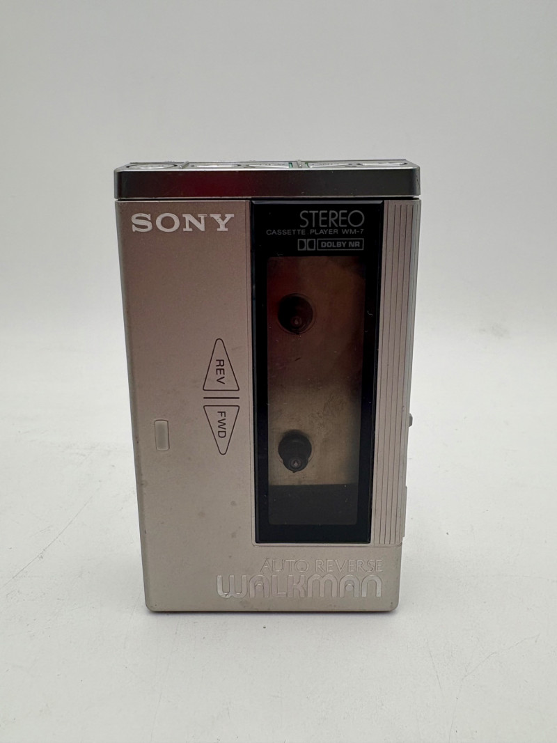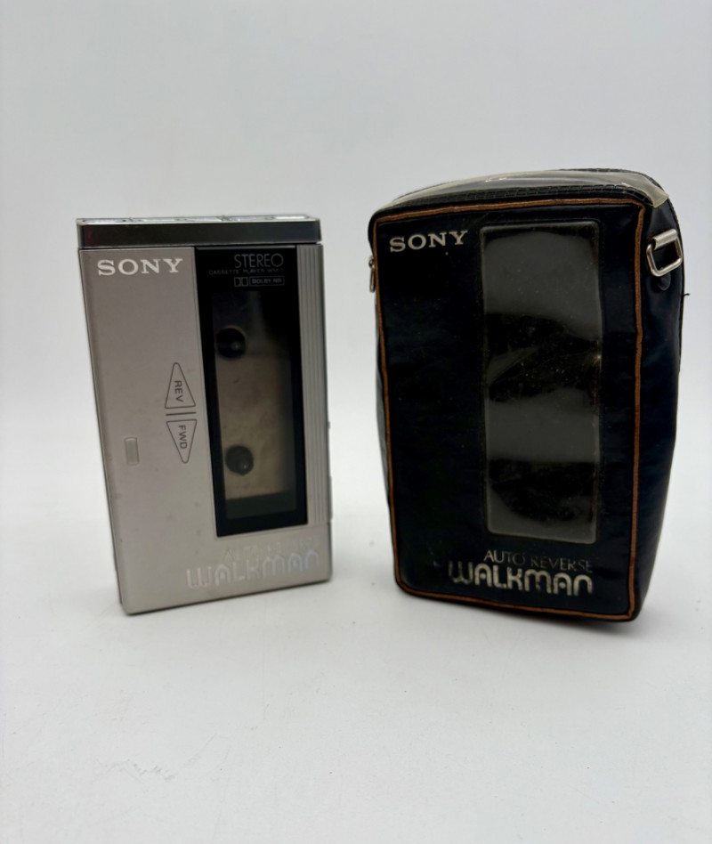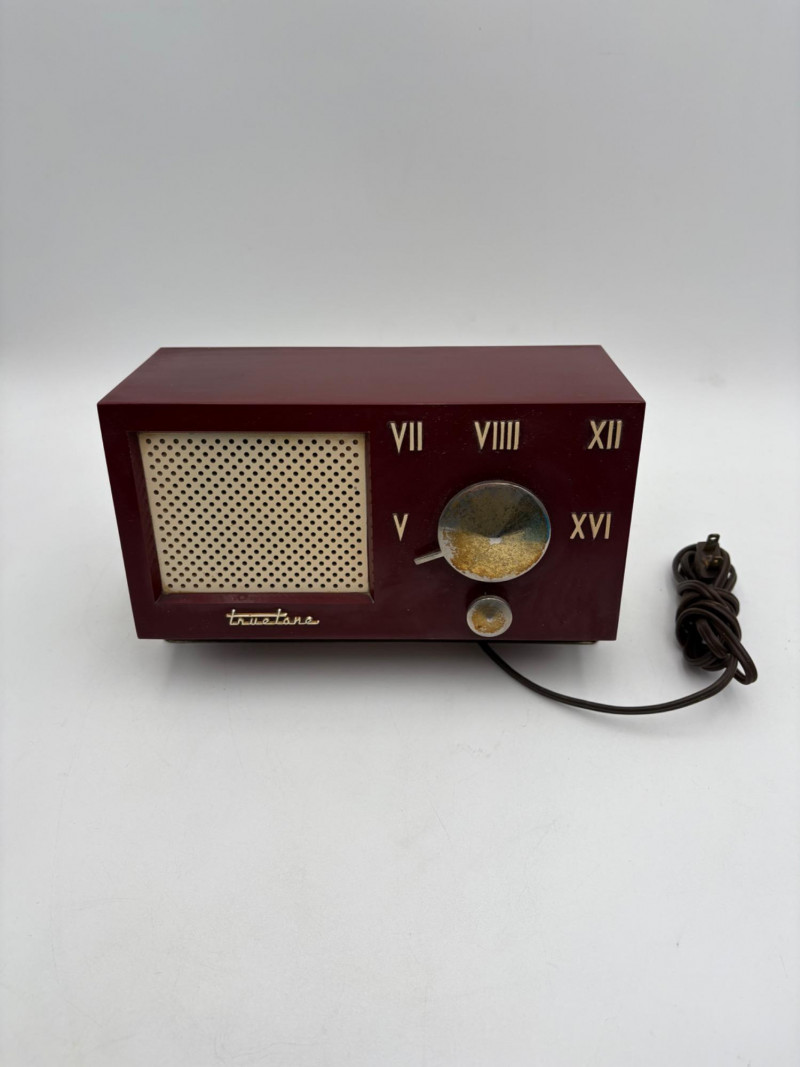OK, right up front we are going to say that we don't know if these items work; if you decide to bid on them you take the chance that they don't (we normally like to make sure electronics work but could not text these as noted below). The TrueTone D-2563 red superheterodyne radio receiver from Western Auto dates from the mid-1950s. It also appears to be in great condition - however, when we plugged it in, we got no static or reaction of any kind. Since this is a tube radio, perhaps that's the issue (it has 5 tubes). Perfect for you electronics geeks out there to go to work on. The case appears to be a Bakelite (early plastic) and the trim is brass. Measures approx. 6" H x 9.5" W x 4" D. The Sony Walkman WM-7 appears to be in good condition; cassette tapes pop in & out & it comes with the original zip case. Unfortunately, we could not find an adapter to charge this and there doesn't appear to be a battery compartment like the Walkmans we remember. This particular model was the first to have that fabulous invention - autoreverse! No removing the cassette & turning it over! If this works, it's worth a bit of cash - apparently folks are rediscovering cassette tapes just like they are vinyl....