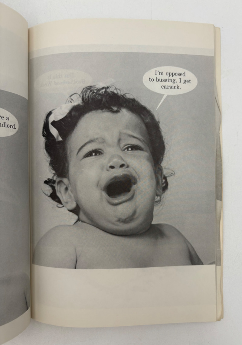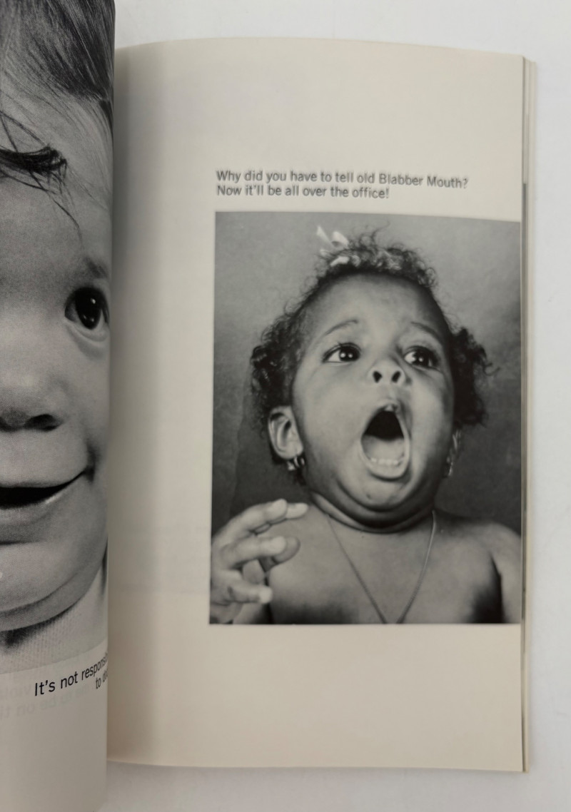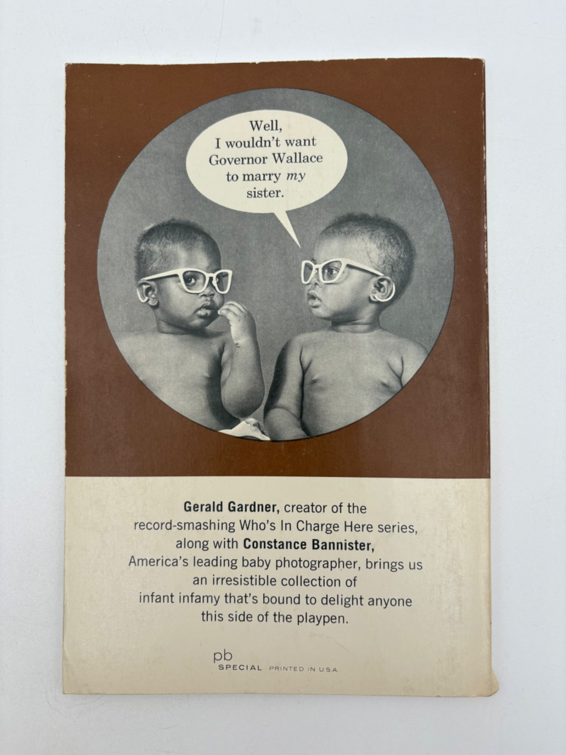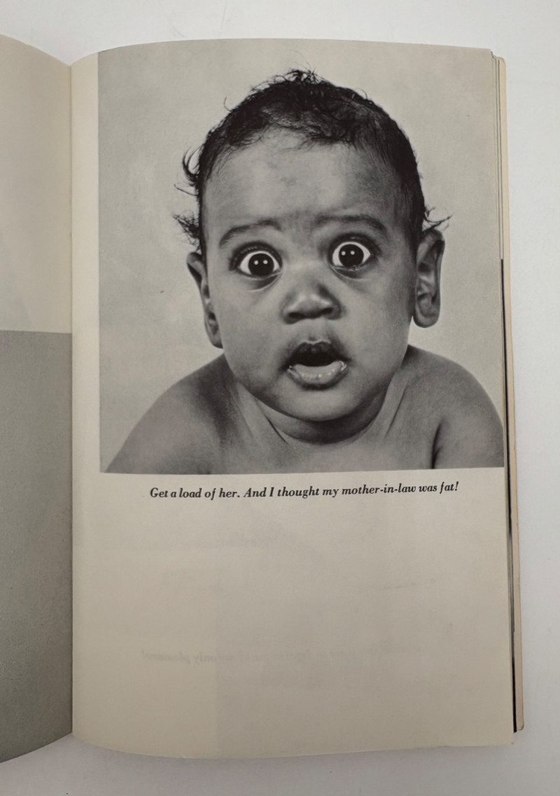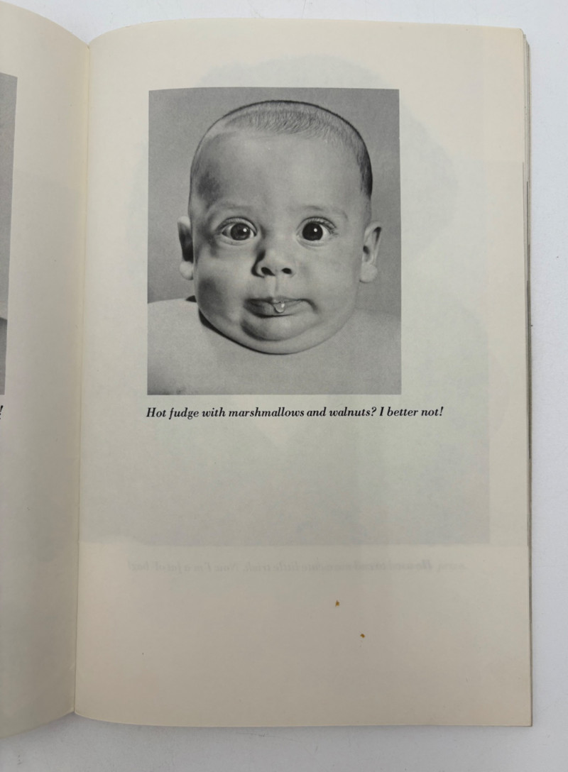Lots of love (and humor) here! 4 Constance Bannister photo books that were immensely popular in the 1960s. Published by Esandess & Pocket Books. All in good used condition with the 3rd one having one page loose. Titles are: - Infernal Revenue (babies commenting of taxes and the IRS) - It's a Riot to Diet (babies making rude remarks about weight and eating) - From the Back of the Incubator (babies making rather stereotyped comments re: civil rights and Black tropes of the 1960s - note that it appears all the babies in this book are Black, but it still evokes a bit of "ick" in terms of stereotypes with today's sensibilities. We think the "back of the incubator" was a very intentional title) - The Organization Baby (babies making comments as if they are at the office/working a job) Classic "I Love You This Much" porcelain figurine we think EVERYONE had in the 1960s except for us! Measures approx. 5" H. From Chadwick Company. Pair of blue & pink plastic "Love" keyrings with phrases that can be innocent or have innuendo depending upon your personal take. Same image on front and back. Riot