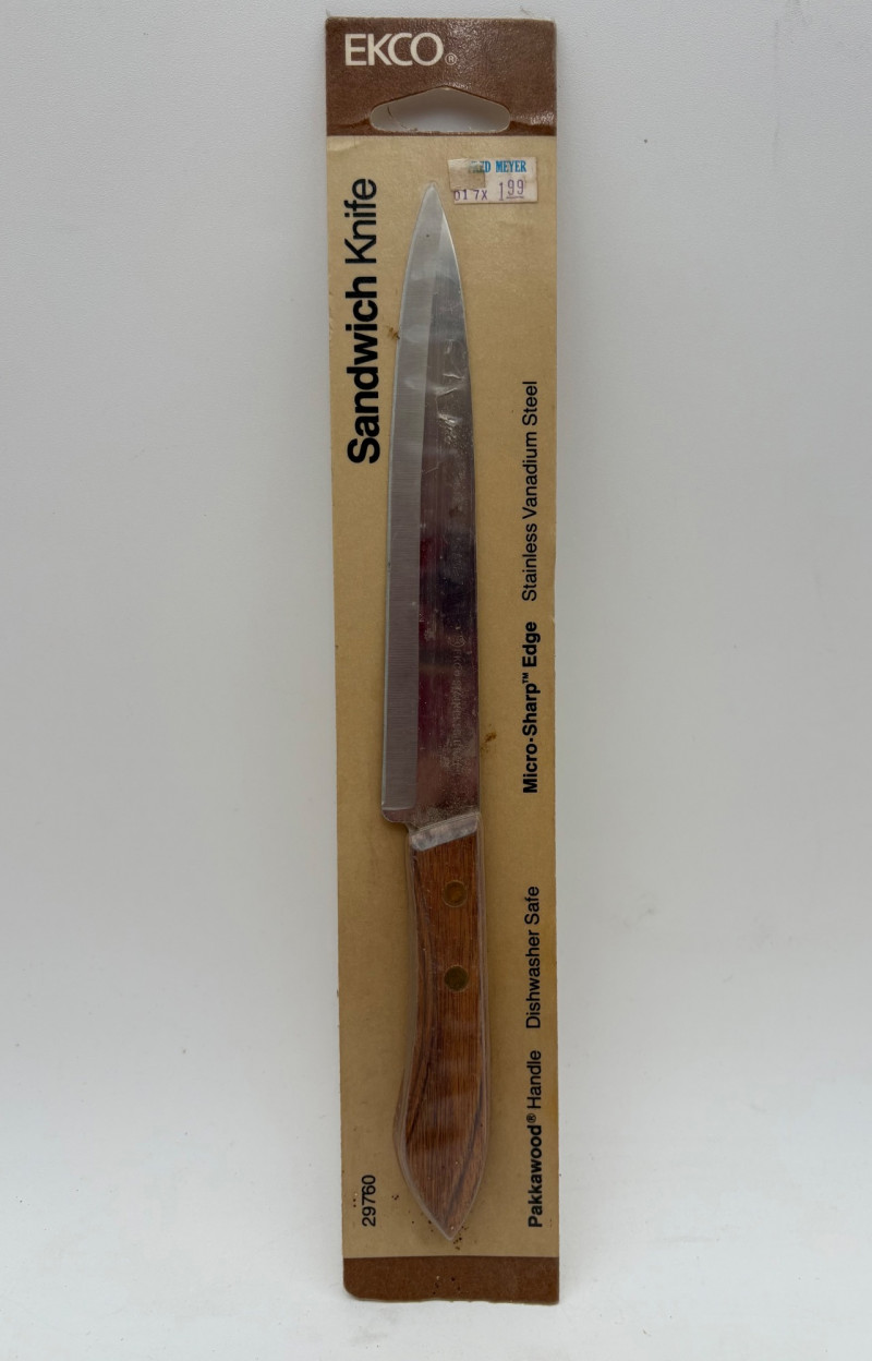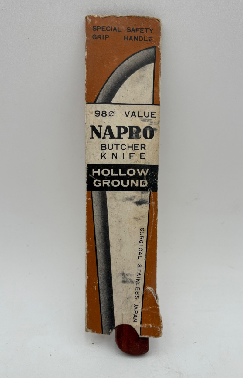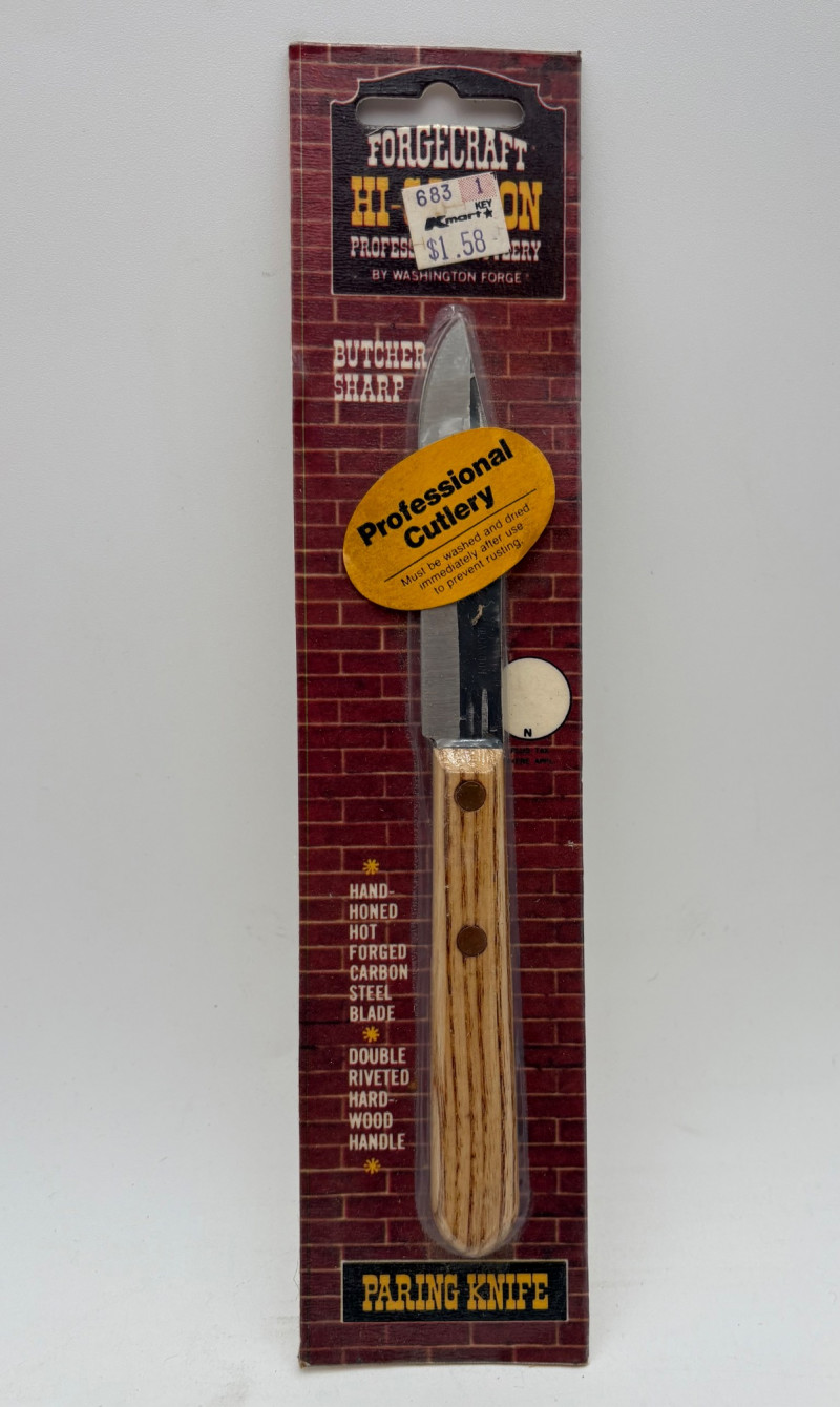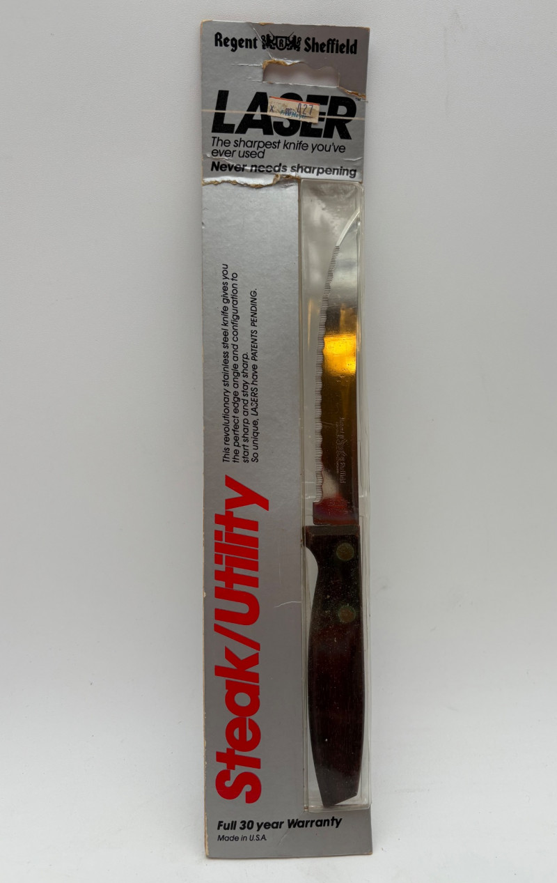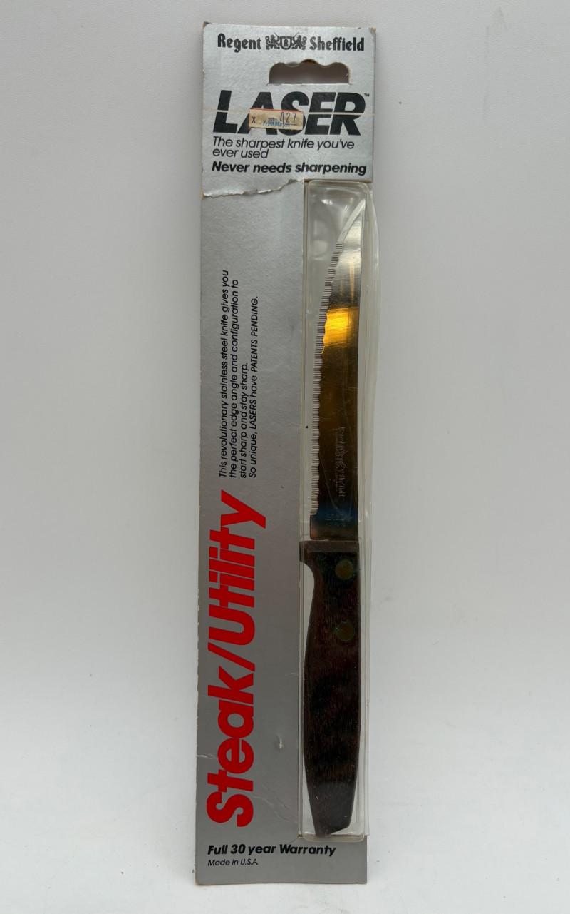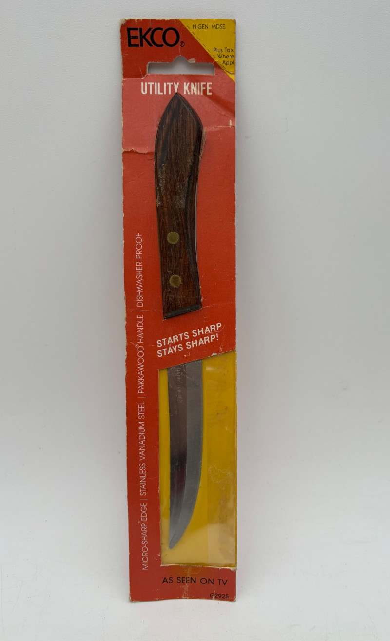 Large group of vintage knives from numerous makers - all appear to be new & unused upon cursory glance. Enjoy never having to hunt for a knife when you need it! Also included are a magnetic wall rack and sharpening stone.